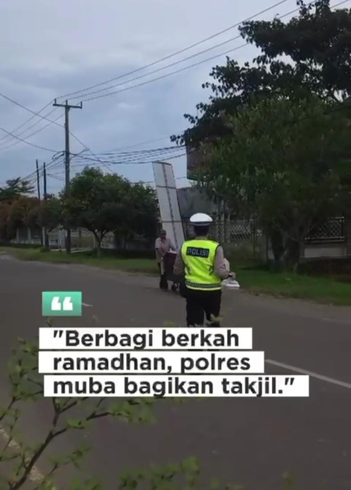Polres Muba manfaatkan momen bulan Ramadan untuk bagi – bagi takjil dan makanan berbuka puasa kepada pengguna jalan.