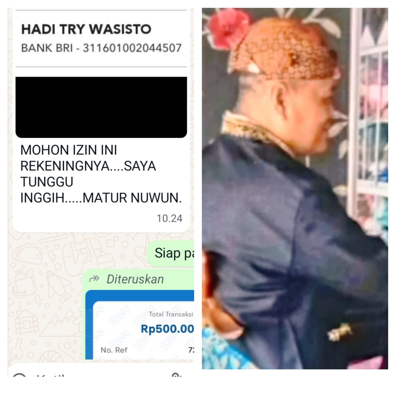 Selang beberapa hari hal di itu tanyakn oleh korban dengan alasan( tunggu ini Masih kami cukupi yang lain belum kumpul semua dan minta korban segera mengirim kan uang sebesar 1,5 juta rupiah.