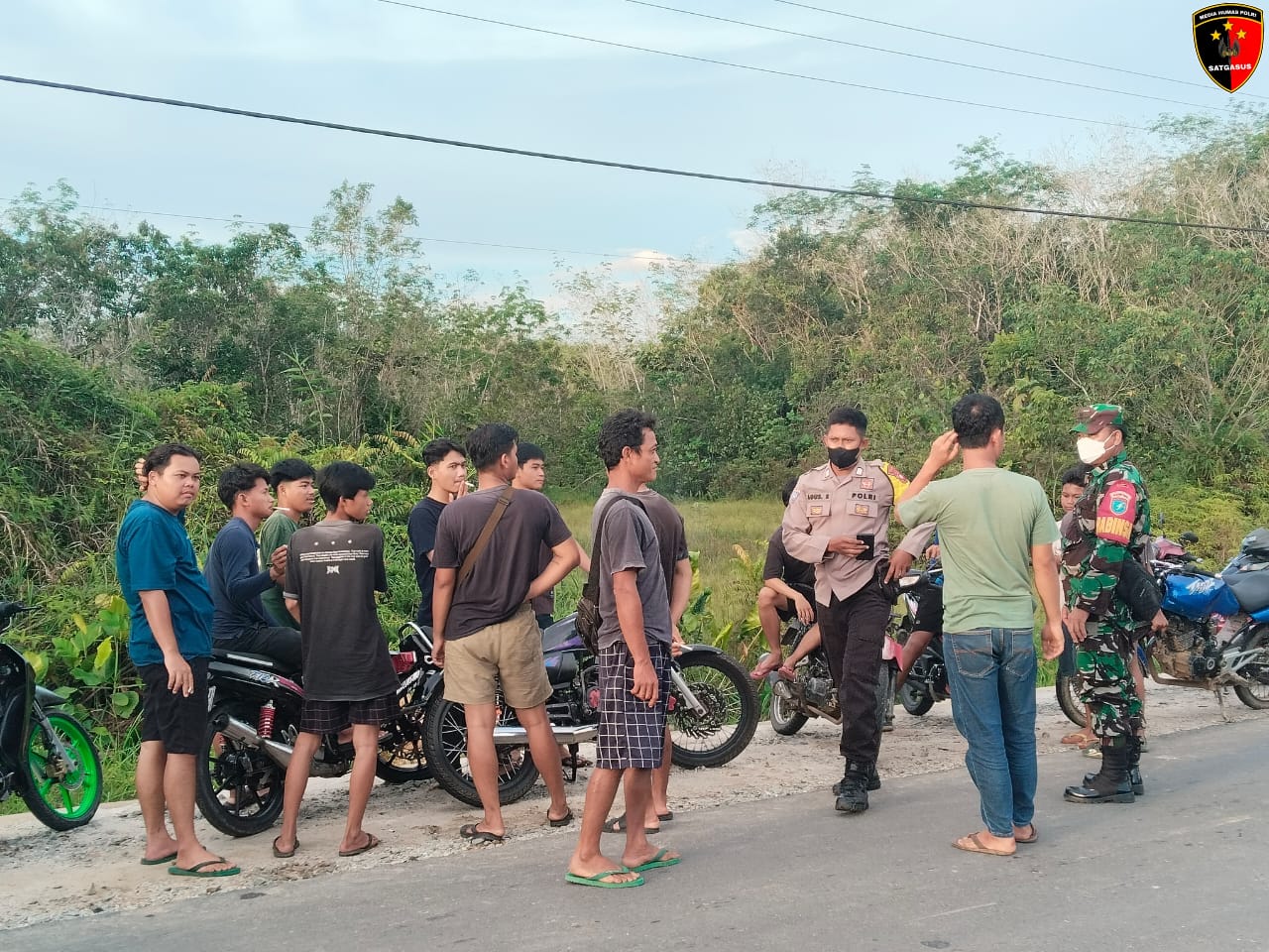 Bhabinkamtibmas Babinsa dan Kepala Desa Tertibkan Aksi Balap Liar di jalan raya lintas Kecamatan di dusun Kurum Putih Desa Mangat Baru Kecamatan Dedai Pada hari Minggu sore (2/3/2025)