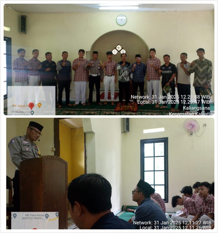 Bhabinkamtibmas Desa Kalijati Barat IPDA Latip Marsal melaksanakan kegiatan Sholat Jumat Keliling (Jumling) di Masjid Yadika lingkungan Pendidikan jalan raya Kalijati-Purwadadi Kecamatan Kalijati, Wilayah Hukum Polsek Kalijati Polres Subang. Jumat,(31/01/2025).
