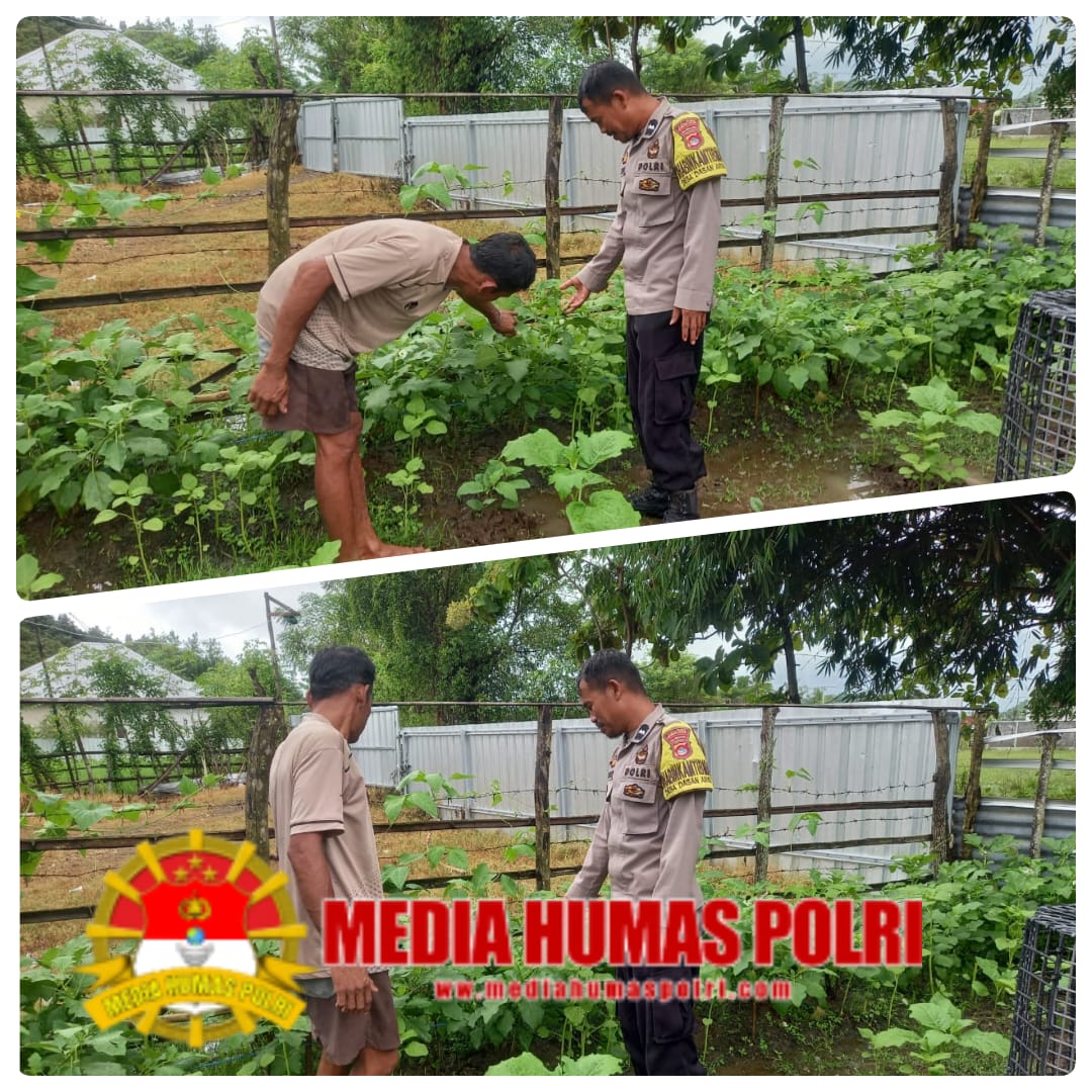 Bhabinkamtibmas Desa Dasan Anyar, Aipda Sugianto, melakukan pengecekan ketahanan pangan pekarangan bergizi milik Bapak Jaya, seorang pengelola tanaman sayur mayur di RT 08 Dusun Baru Pasingga, Desa Dasan Anyar, Kecamatan Jereweh, Kabupaten Sumbawa Barat. Kegiatan ini berlangsung pada hari Minggu, 23 Maret 2025, pukul 10.30 WITA.