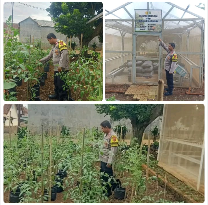 Bhabinkamtibmas Desa Dawuan Kidul, Brigadir Suja, menyambangi kegiatan Kelompok Pekarangan Pangan Lestari (P2L) untuk memberikan penyuluhan tentang tatacara bertanam di KWT. Mutiara Sinar Mandiri Dusun Cibeunying, Desa Dawuan Kidul Kecamatan Dawuan Kabupaten Subang.