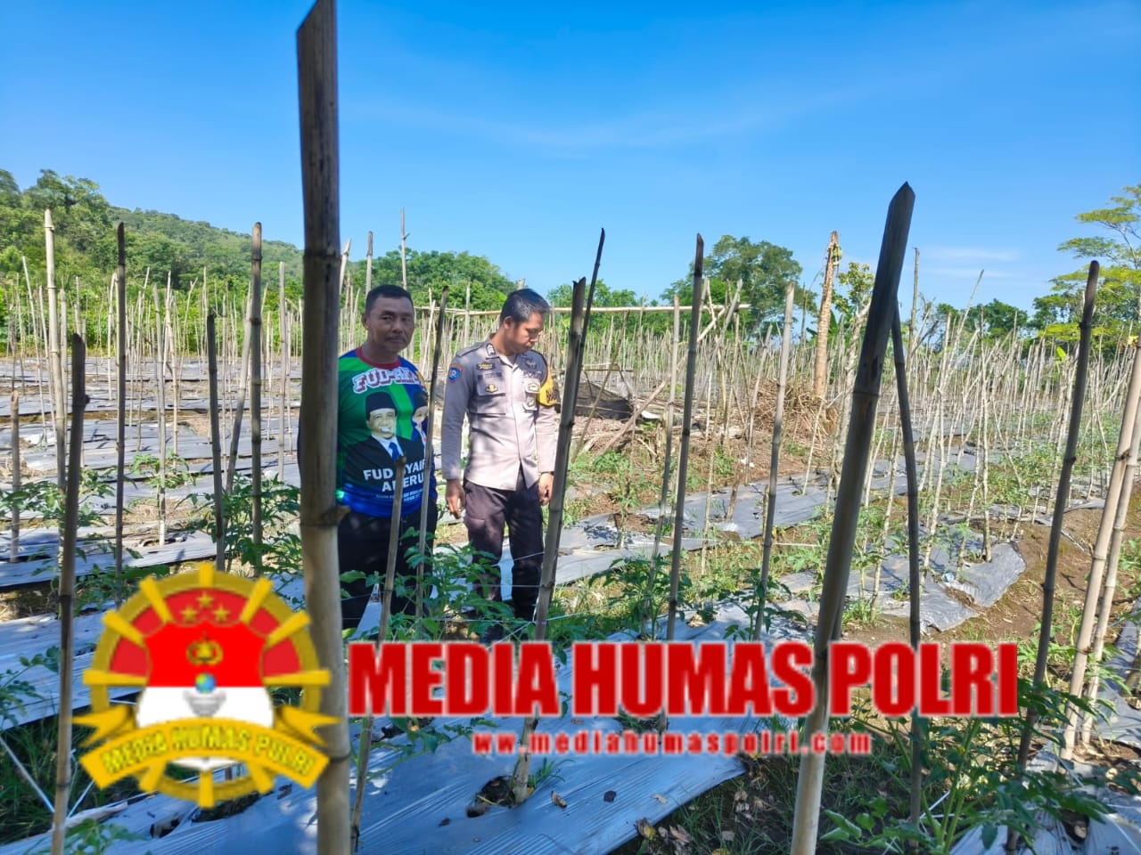“Bhabinkamtibmas melaksanakan pengecekan pengelolaan pekarangan pangan bergizi milik salah satu warga desa binaan yang menanam sayur-sayuran berupa cabe dan tomat,” jelas Kasi Humas.