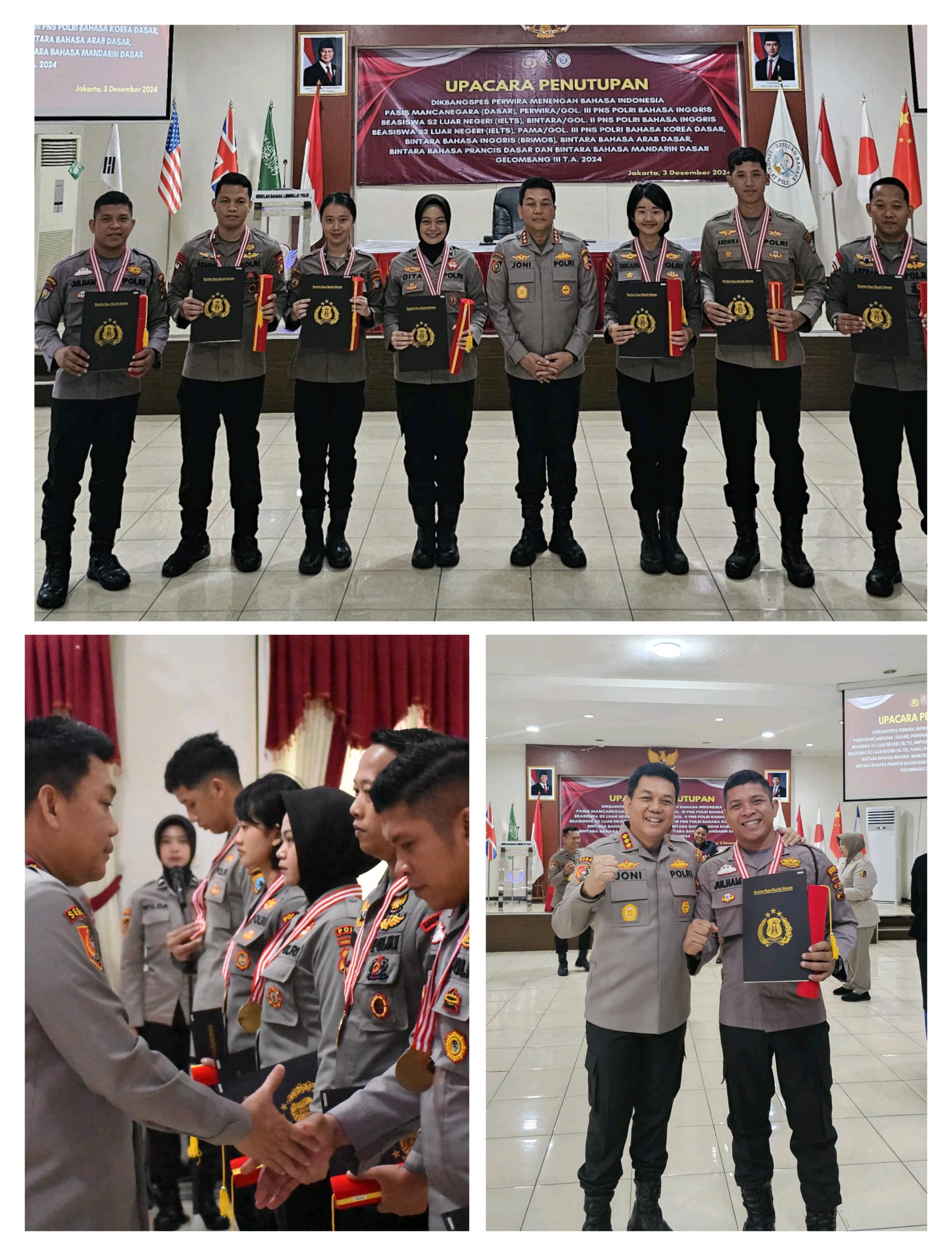 Dalam acara ini, Kepala Sekolah Bahasa (Kasebasa) Lemdiklat Polri, KOMBES Pol Joni Getamala, S.H., menyerahkan penghargaan kepada para juara di masing-masing kelas bahasa.