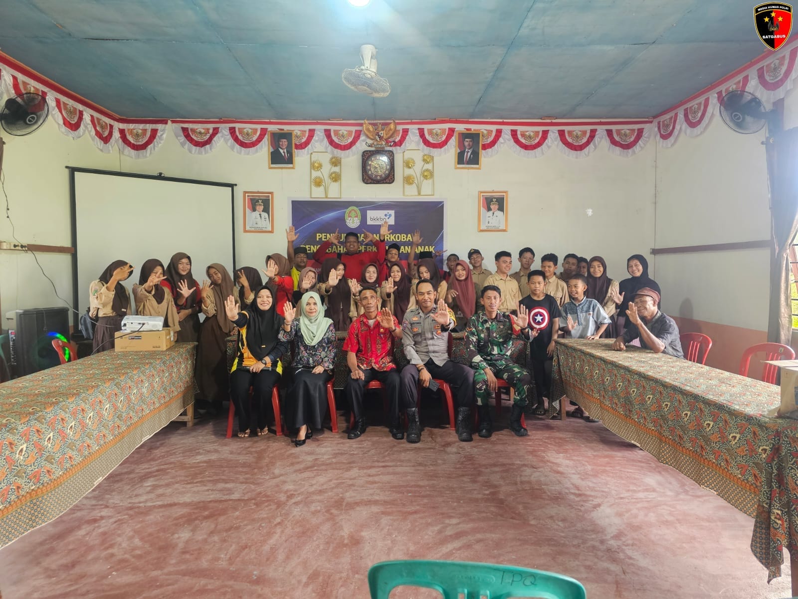 Bhabinkamtibmas Polsek Matan Hilir Selatan, Polres Ketapang, menghadiri kegiatan penyuluhan bahaya narkoba dan pencegahan pernikahan anak yang dilaksanakan di Gedung Balai Guna, Desa Pematang Gadung, Kecamatan Matan Hilir Selatan, pada (25/04).