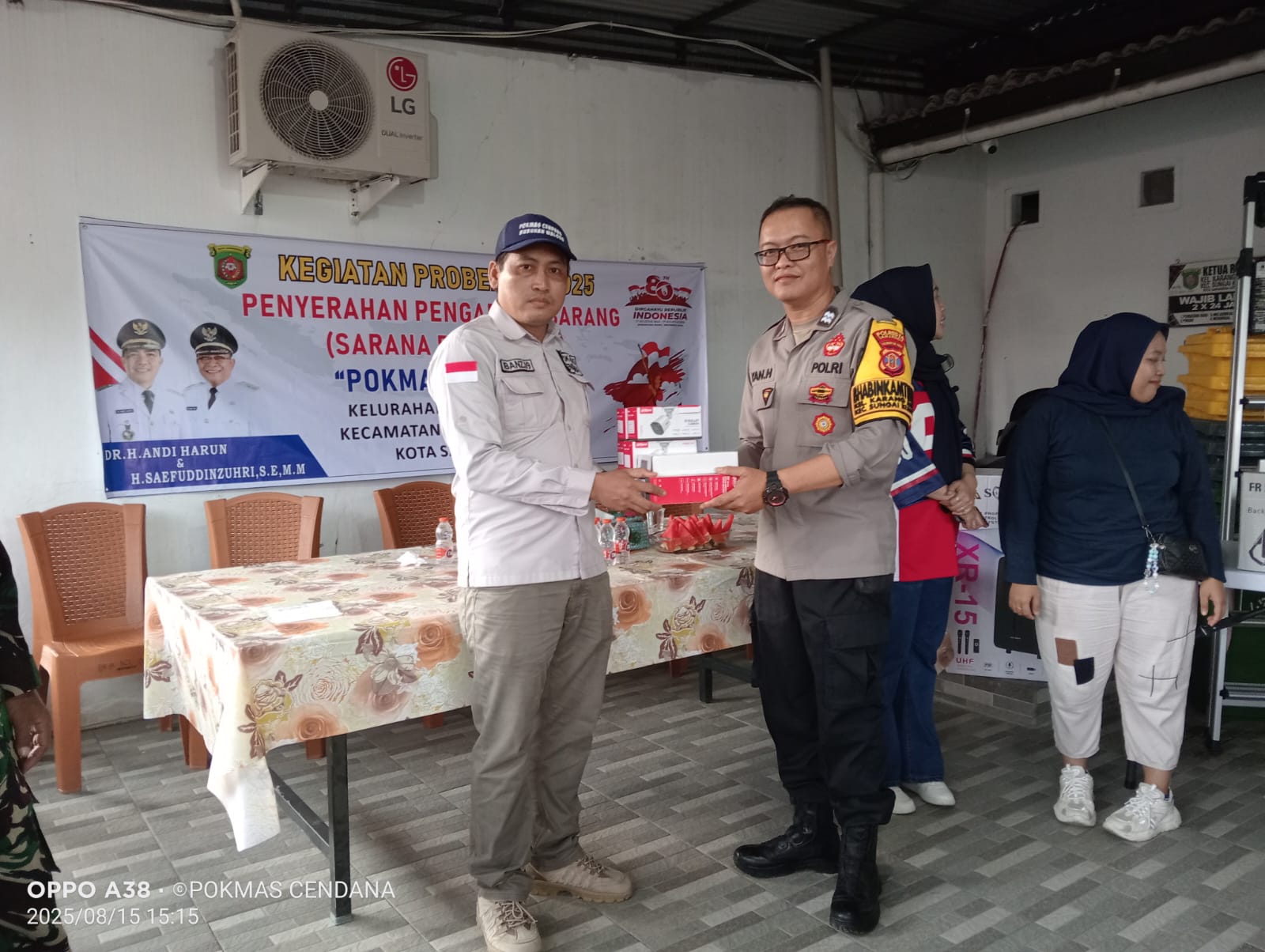Bhabinkamtibmas Polsek Sungai Kunjang, Kelurahan Karang Anyar, Aiptu Yan Hardinata menghadiri kegiatan penyerahan sarana kontak dalam program Probebaya Kota Samarinda yang digelar di Aula Kelurahan Karang Anyar, Kecamatan Sungai Kunjang, Selasa (19/8/2025).