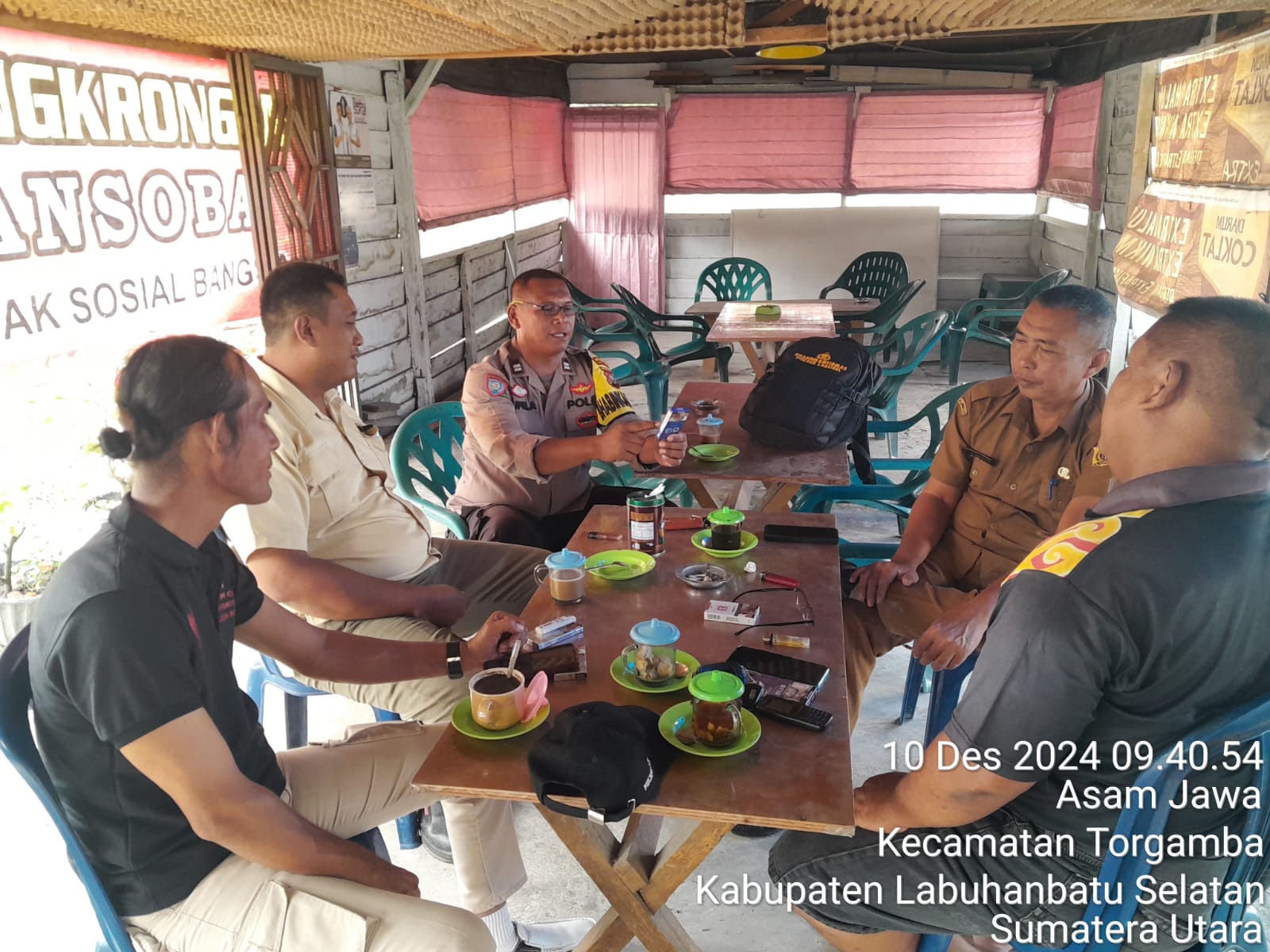 Bhabinkamtibmas Polsek Torgamba, AIPTU Supriadi, melaksanakan kegiatan Sambang Desa, Sosialisasi, Edukasi, dan Cooling System di Desa Bunut, Kecamatan Torgamba, Kabupaten Labuhanbatu Selatan, Selasa (10/12/2024).