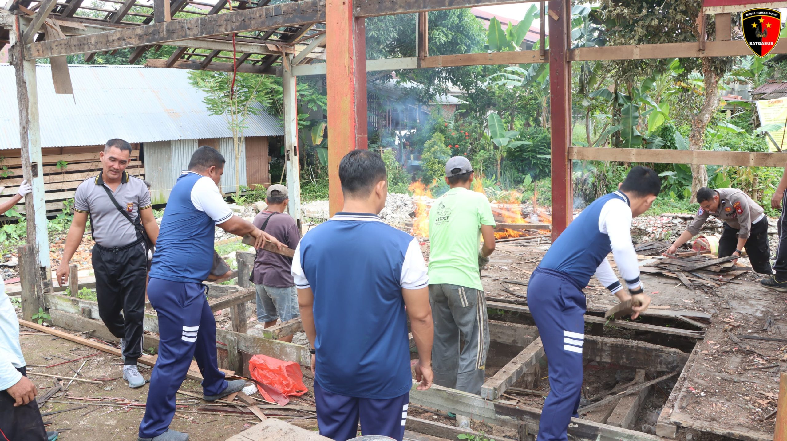 Dipimpin Kasat Binmas Polres Sekadau IPTU M. Suyatman dan Kapolsek Sekadau Hilir AKP Burhan Nuddin, sejumlah personel Polres dan Polsek Sekadau Hilir bersama pengurus klenteng bergotong royong membersihkan area klenteng sekaligus melakukan pembongkaran bangunan lama.