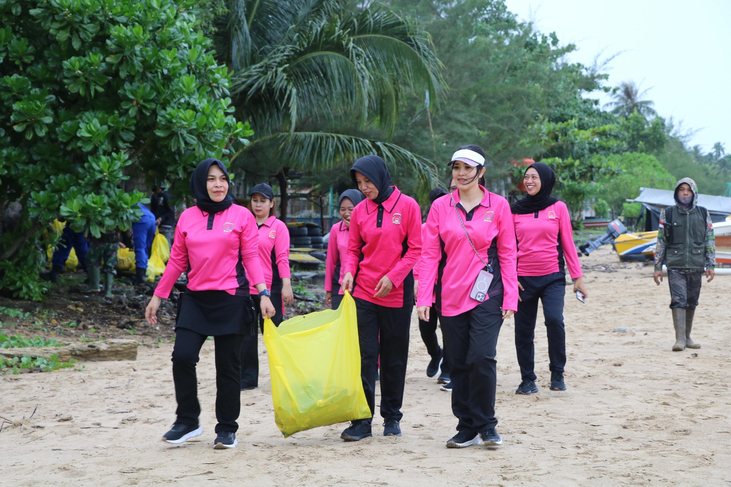 Ibu-ibu Bhayangkari turut ambil bagian secara aktif dalam kegiatan ini. Mereka tidak hanya membantu membersihkan pantai, tetapi juga menyiapkan konsumsi untuk peserta dan memberikan edukasi ringan kepada anak-anak tentang pentingnya menjaga kebersihan laut dan ekosistem pantai.