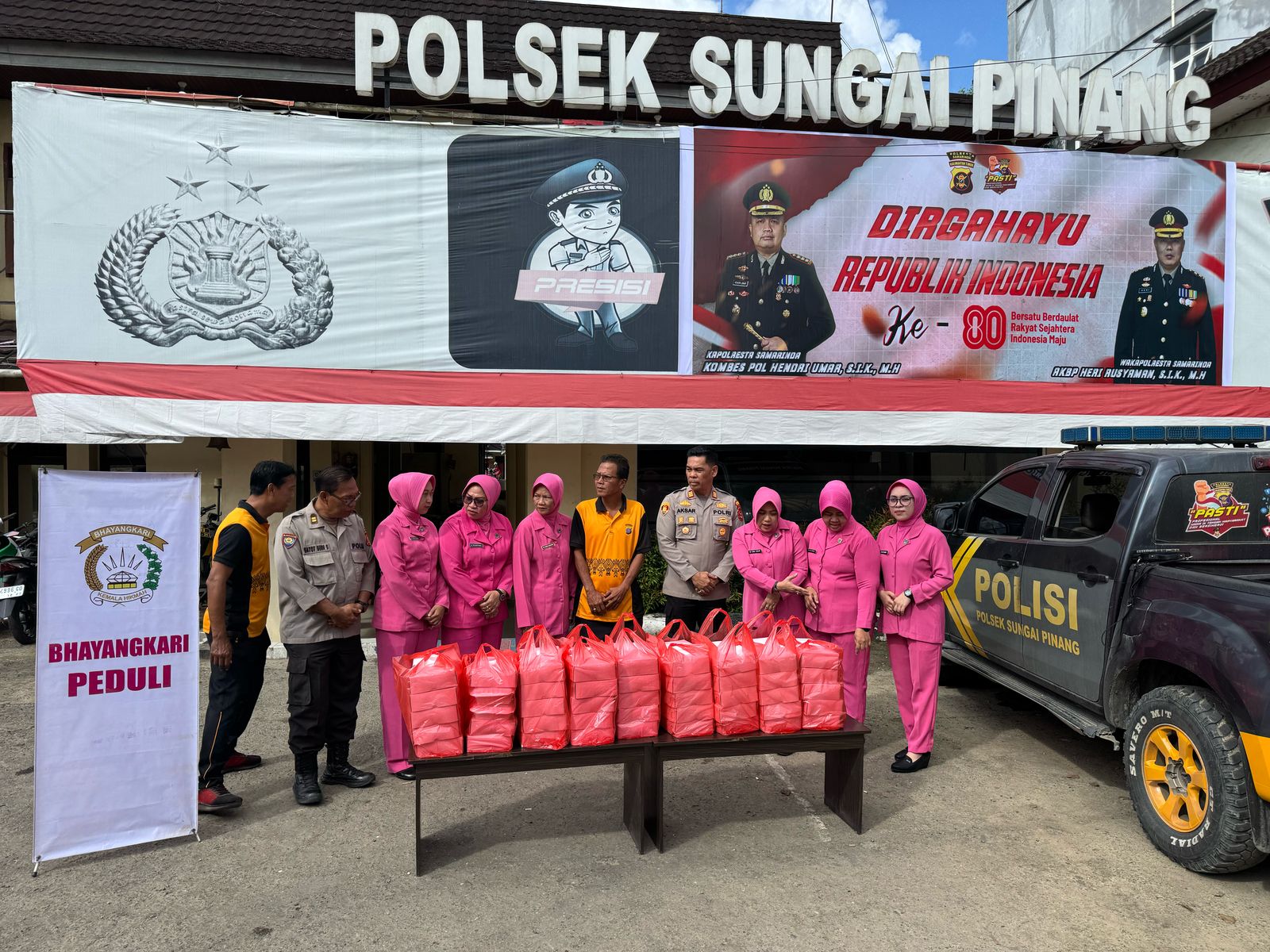Semoga kegiatan ini menjadi ladang pahala dan memperkuat ikatan silaturahmi antara Polri dan masyarakat,” harap Ketua Bhayangkari Ranting Polsek Sungai Pinang, Ny. Erny Aksarudin.