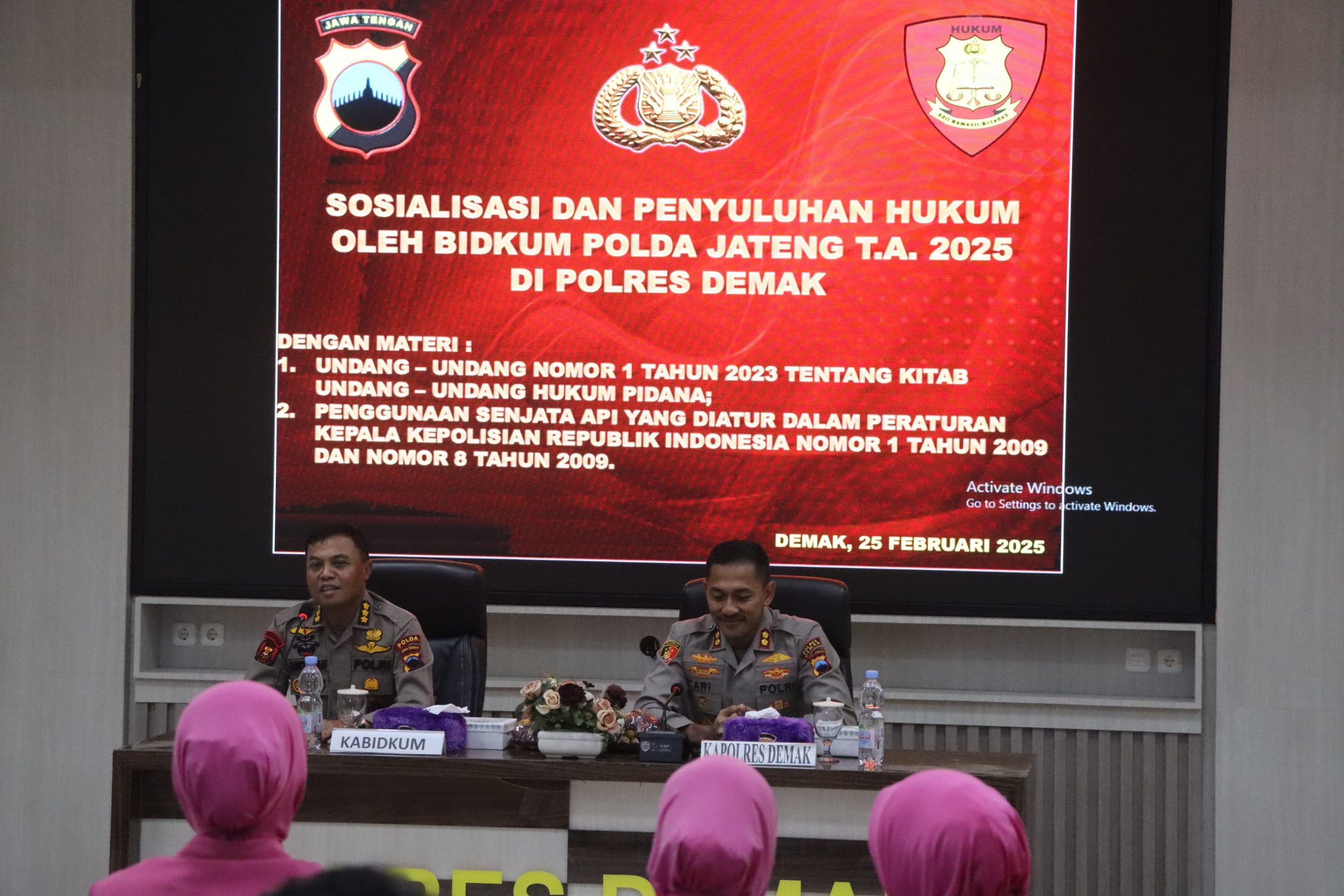 Bidang Hukum (Bidkum) Polda Jawa Tengah menggelar sosialisasi dan penyuluhan hukum kepada anggota dan Bhayangkari Polres Demak di Aula Wicaksana Laghawa, Selasa (25/2/2025).