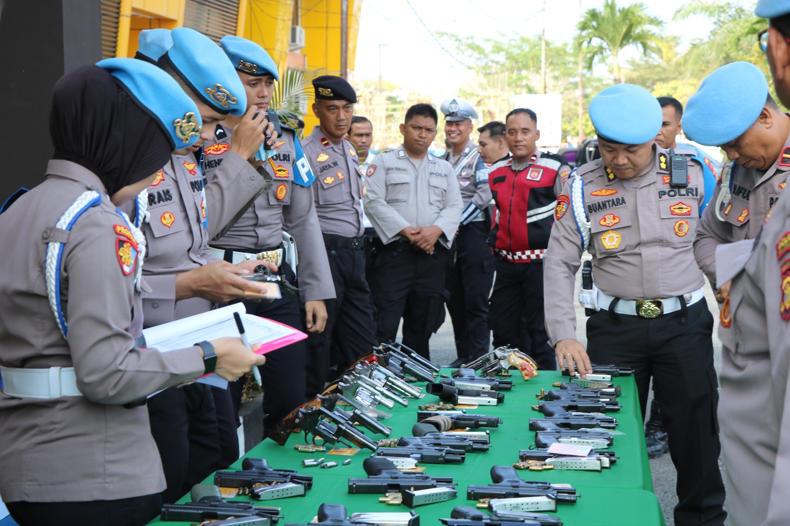 Pemeriksaan dilakukan terhadap senjata laras panjang jenis V2 Sabhara, senjata genggam jenis Revolver, serta HS yang dipinjam pakaikan kepada anggota Polres PPU. Tujuannya untuk memastikan penggunaan sesuai aturan dan kondisi senjata dalam keadaan siap pakai.
