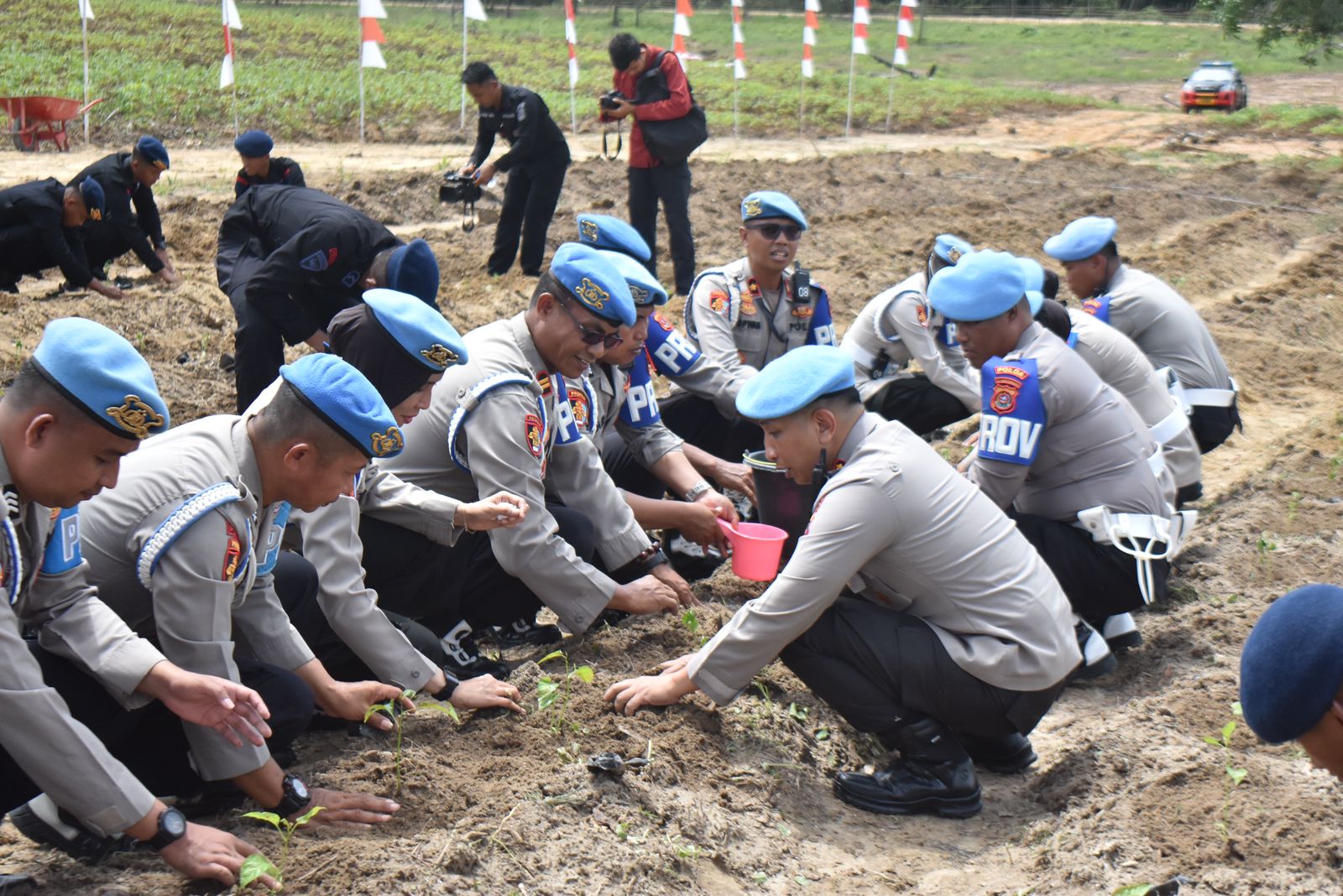 Selain melakukan pengamanan, personel Bidpropam juga turut aktif dalam kegiatan penanaman tanaman bersama Kabidpropam Polda Sultra. Kegiatan ini merupakan wujud nyata komitmen Polri dalam mendukung program ketahanan pangan yang bertujuan untuk menjaga ketersediaan pangan, khususnya di wilayah Sulawesi Tenggara.