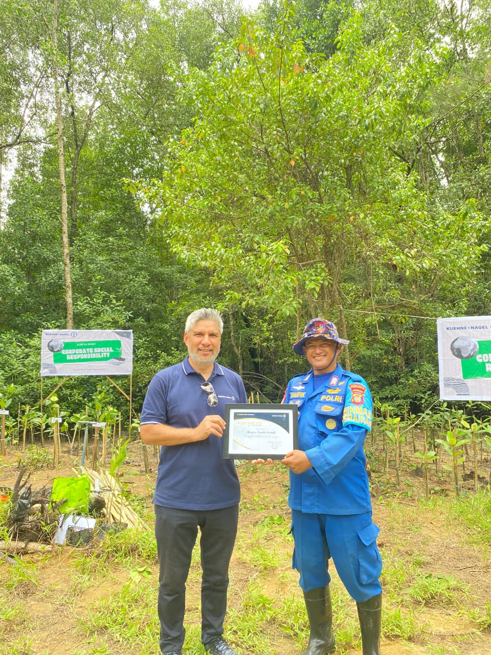 Dalam rangka memperingati Hari Penanggulangan Degradasi Lahan dan Kekeringan Sedunia, Unit Binmas Air Direktorat Polairud Polda Kalimantan Timur bekerja sama dengan PT. Kuehne Nagel Indonesia melaksanakan kegiatan penanaman 100 bibit mangrove di pesisir Pantai Lamaru, Kecamatan Balikpapan Timur, Rabu (18/6/2025).