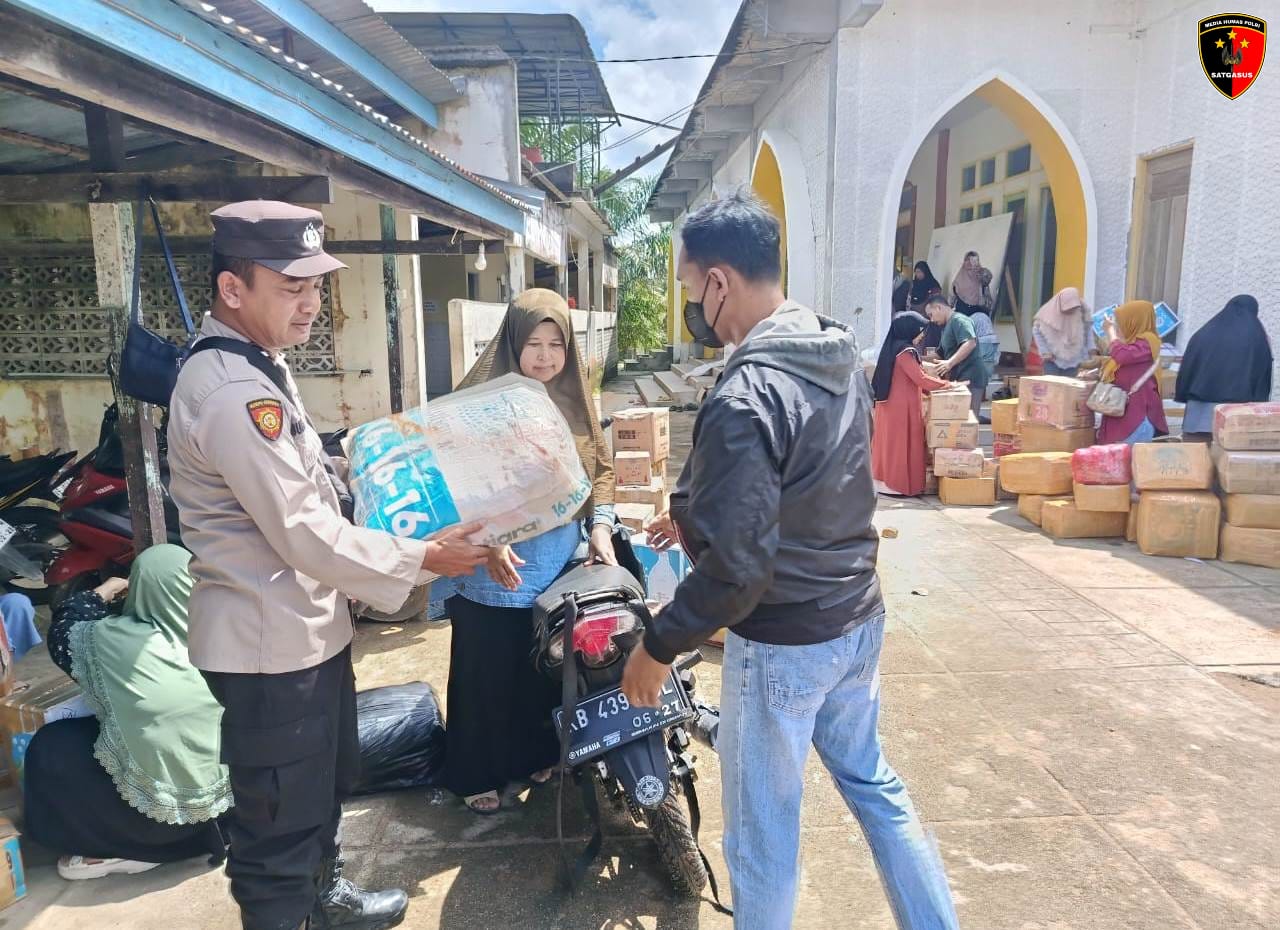 Selain memberikan pengamanan, personel Polsek Mukok juga aktif terlibat langsung dalam membantu jalannya kegiatan. Anggota kepolisian turut membantu proses pengangkutan barang, pengemasan bantuan, hingga penataan logistik agar seluruh bantuan dapat terkelola secara rapi dan tertib.