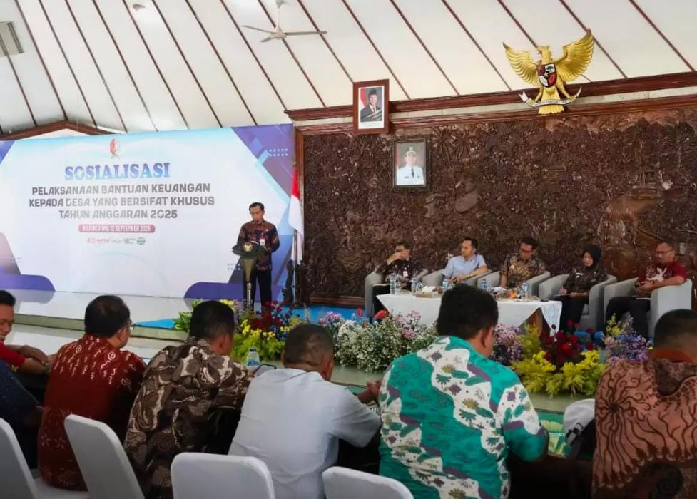 Pemerintah Kabupaten Bojonegoro mengadakan sosialisasi pelaksanaan Bantuan Keuangan Kepada Desa (BKK Desa) tahun anggaran 2025 di Pendopo Malowopati, Jumat (12/9/2025).