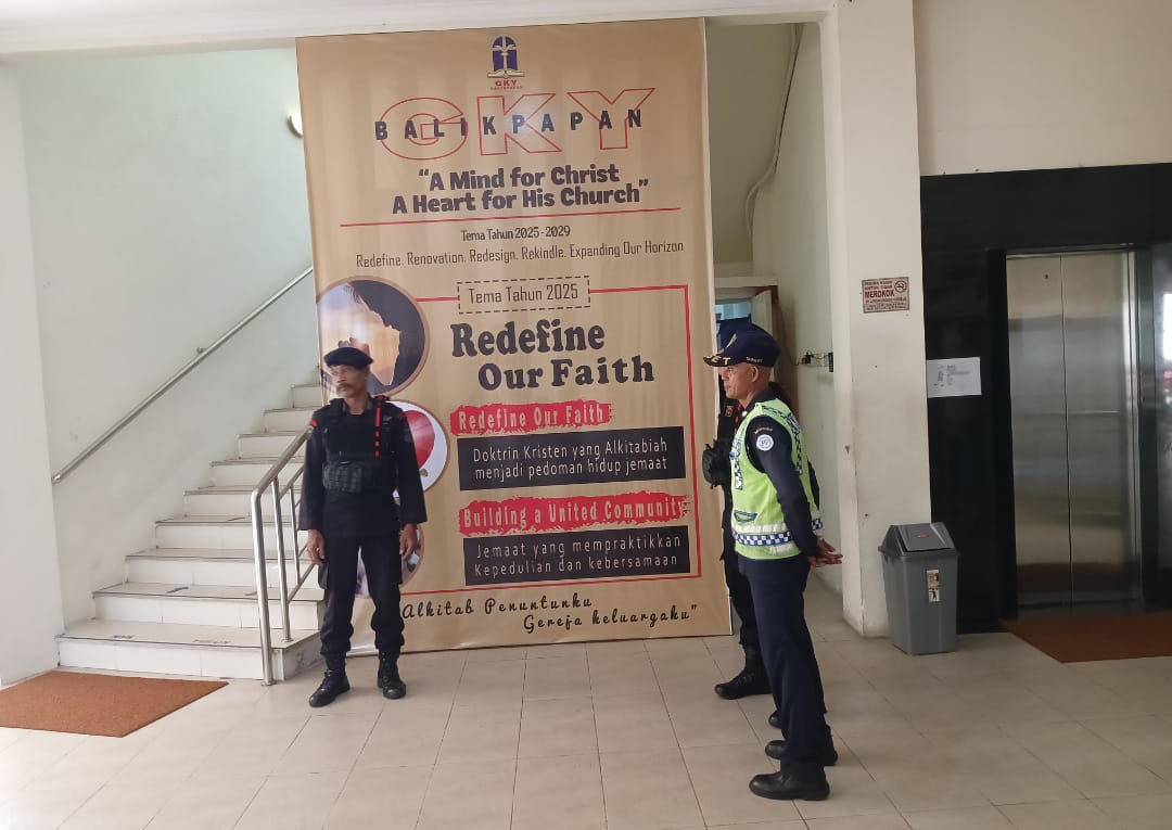 Dalam rangka menjaga situasi kamtibmas yang aman dan kondusif saat umat Kristiani melaksanakan ibadah, Personel Kompi 1 Batalyon A Pelopor Satbrimob Polda Kaltim rutin melaksanakan patroli pengamanan gereja setiap hari Minggu di wilayah hukum Kota Balikpapan, termasuk pada Minggu, 25 Mei 2025.