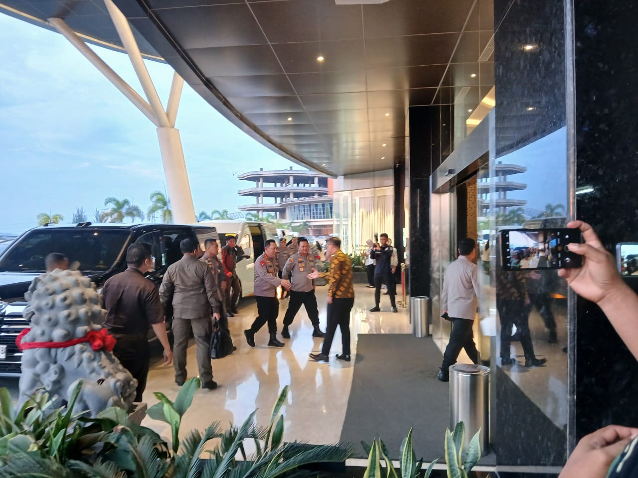 Satuan Brigade Mobil (Satbrimob) Polda Kalimantan Timur melaksanakan pengamanan ketat dalam rangka kunjungan kerja Kapolri pada kegiatan Kongres Gerakan Mahasiswa Kristen Indonesia (GMKI) yang berlangsung di GOR Kadrie Oening, Samarinda, Jumat (16/5/2025).