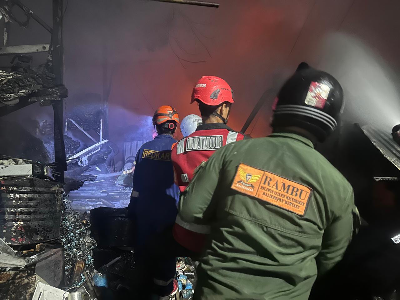 Aksi sigap kembali ditunjukkan oleh Tim Respons Bencana Batalyon A Pelopor Satbrimob Polda Kaltim saat kebakaran melanda sebuah bangunan pengepul besi tua di kawasan Sepinggan, Balikpapan Selatan, pada Sabtu dini hari.