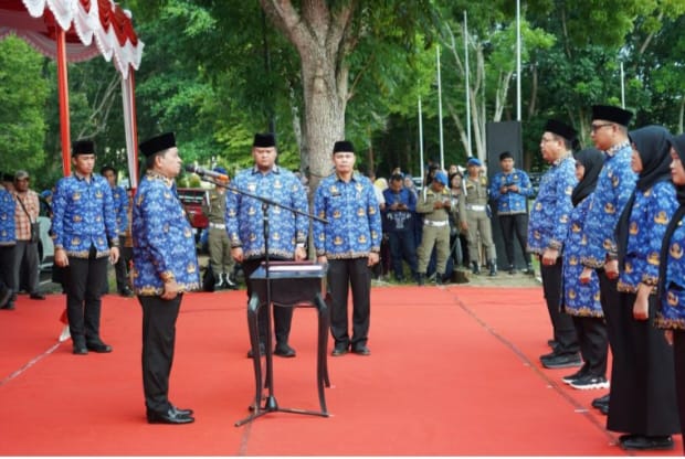 Bupati Banyuasin Dr. H. Askolani, S.H., M.H., melakukan rotasi sejumlah Pejabat Eselon II atau Pejabat Pimpinan Tinggi Pratama di lingkungan Pemerintah Kabupaten Banyuasin, Senin (20/10/2025). Setidaknya ada 17 Pejabat Tinggi Pratama yang dilantik yang dipusatkan di lapangan upacara Pemerintah Kabupaten Banyuasin.