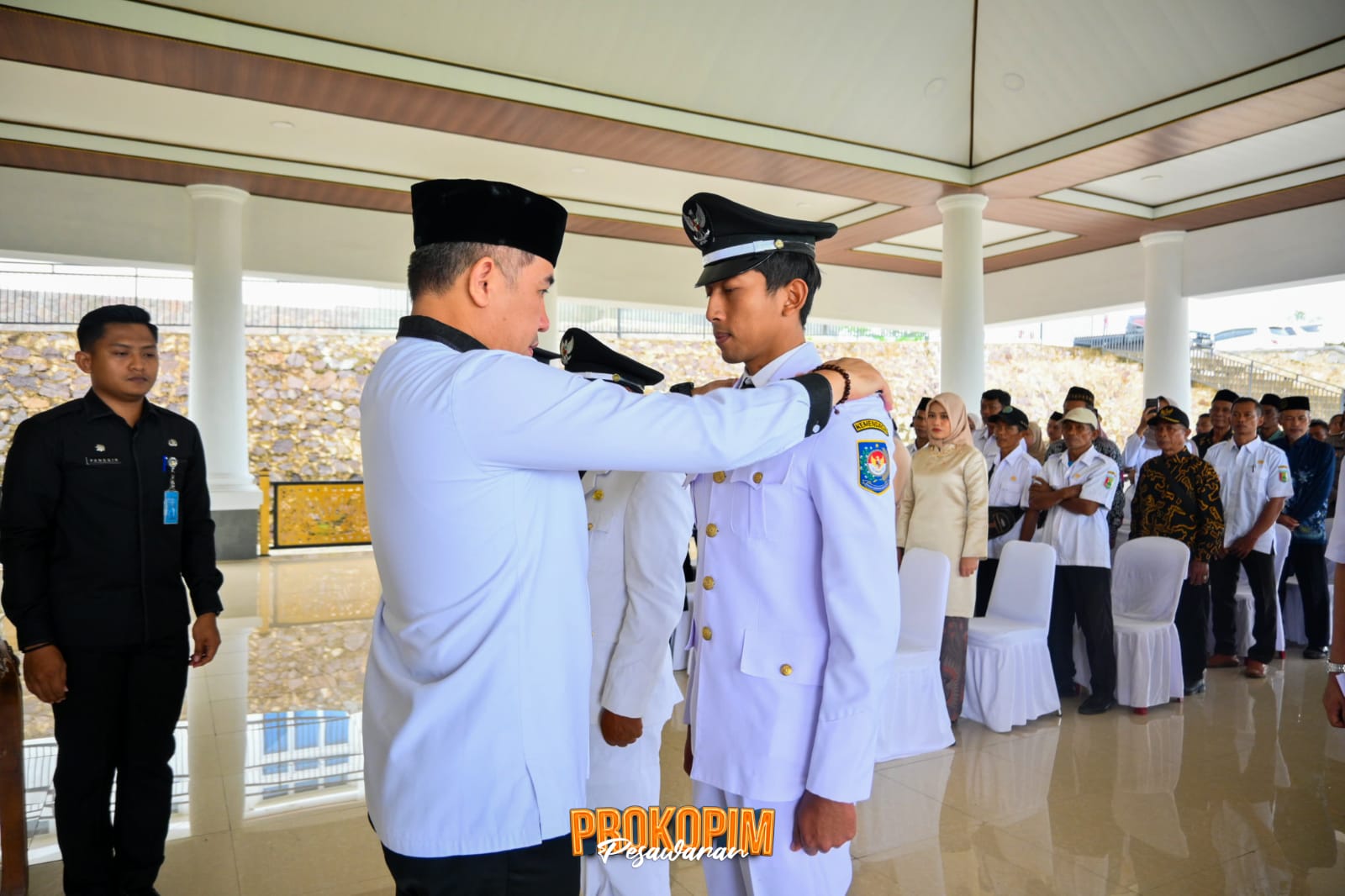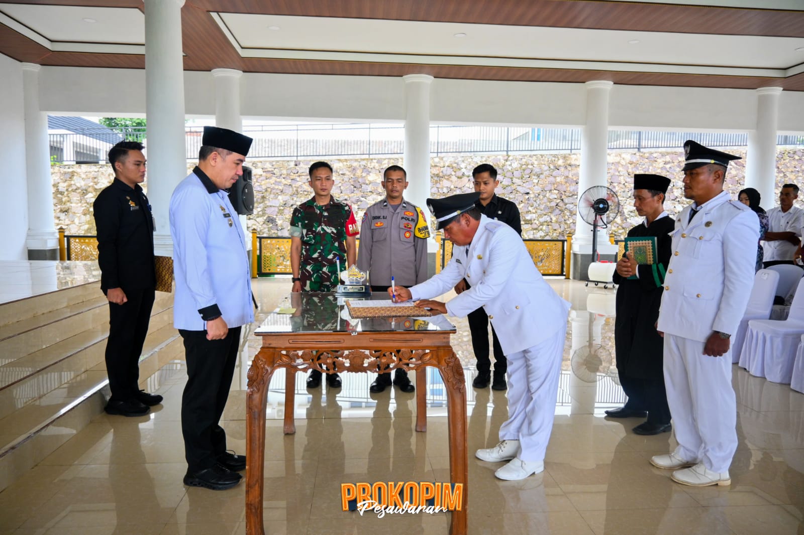 Bupati Pesawaran Dendi Ramadhona melantik Penjabat (Pj) Kepala Desa Grujugan Baru, Pujodadi dan Purworejo Kecamatan Negeri Katon pada Rabu, (15/1/2025) di GSG Lamban Agung, Komplek Rumah Dinas Bupati Pesawaran.
