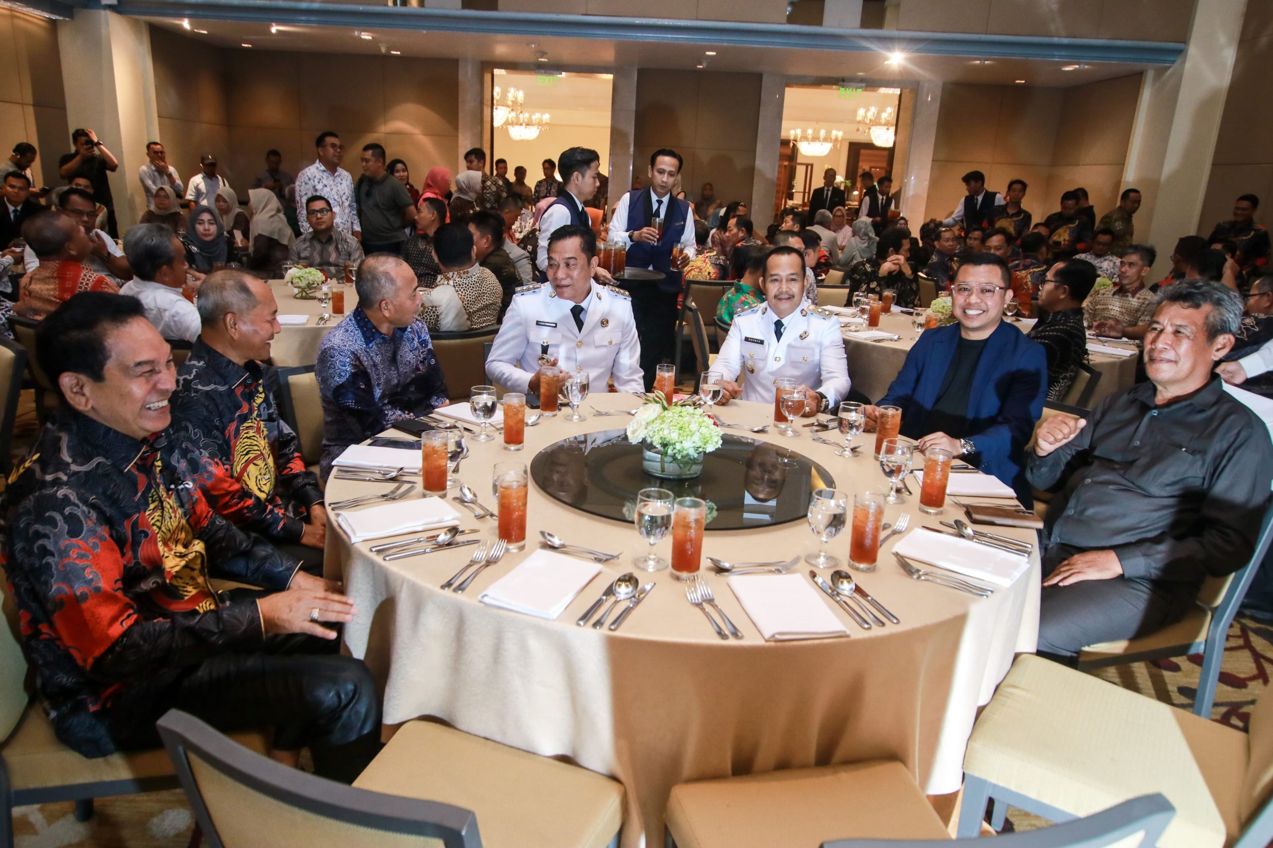 Setelah resmi dilantik oleh Presiden RI di Istana Merdeka, Bupati Musi Banyuasin (Muba) H M Toha SH dan Wakil Bupati Muba Rohman disambut hangat dalam acara ramah tamah yang digelar di Ballroom Hotel Grand Hyatt, Jakarta, Kamis (20/2/2025). Acara ini dihadiri oleh Sekretaris Daerah Kabupaten Muba Dr H Apriyadi MSi, jajaran Kepala Perangkat Daerah Kabupaten Muba, serta keluarga besar kedua pemimpin daerah tersebut.