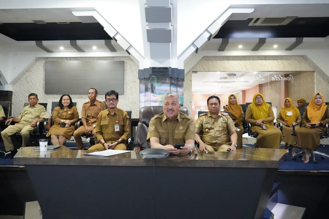 Bupati Pinrang, H.Andi Irwan Hamid, S.Sos., didampingi Sekretaris Daerah Kabupaten Pinrang, A. Calo Kerrang, mengikuti rapat koordinasi secara virtual (Zoom Meeting) yang digelar oleh Pemerintah Provinsi Sulawesi Selatan, Selasa (20/5/2025).