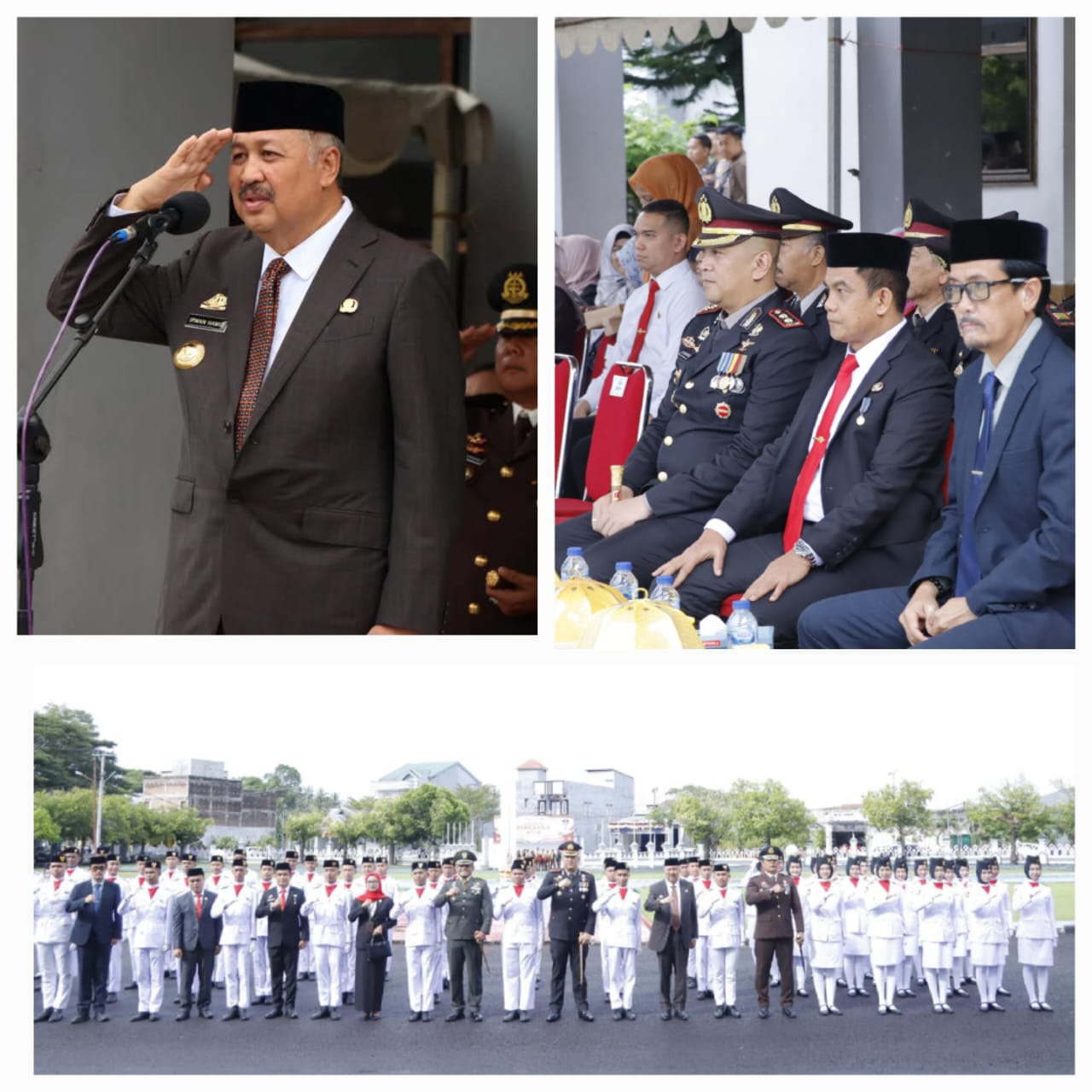 Pasukan upacara terdiri dari berbagai elemen, termasuk personel TNI, Polri, Satpol PP, Damkar, Dishub, Paskibraka, ASN, serta pelajar dari jenjang SD hingga SMA. Rangkaian kegiatan berjalan dengan tertib dan lancar, mulai dari pengibaran bendera Merah Putih, pembacaan Pancasila, hingga amanat Inspektur Upacara yang membacakan pidato Kepala Badan Pembinaan Ideologi Pancasila (BPIP) Republik Indonesia.