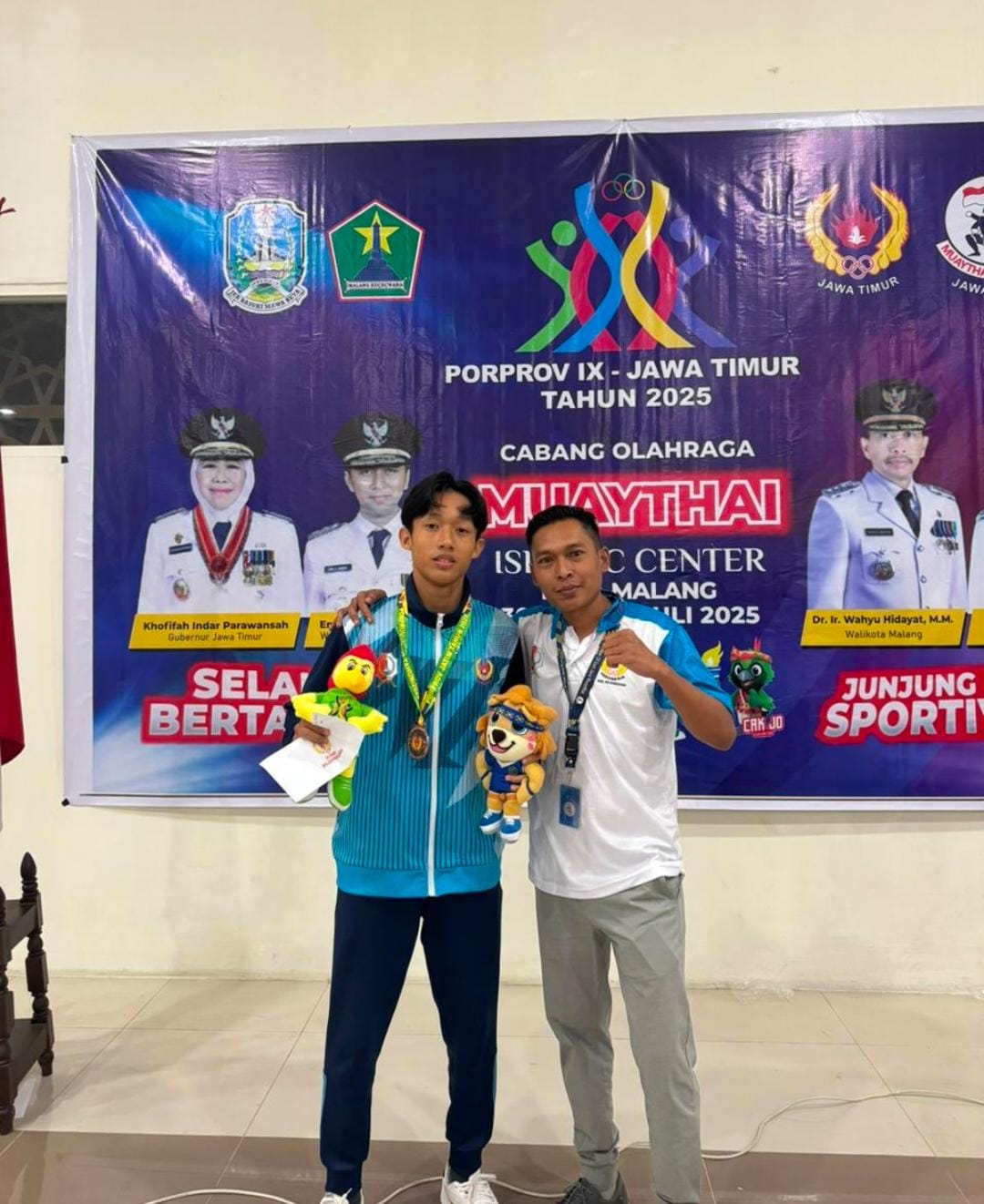 Atlet Muaythai Bojonegoro, Nur Havis Rian, berhasil meraih medali emas di Porprov 2025 setelah mengalahkan atlet dari Kota Malang di babak final. Rian, yang berusia 18 tahun, memenangkan medali emas di nomor 63,5 kilogram.Ini merupakan pencapaian luar biasa bagi cabor Muaythai Bojonegoro yang baru terbentuk pada tahun 2024.