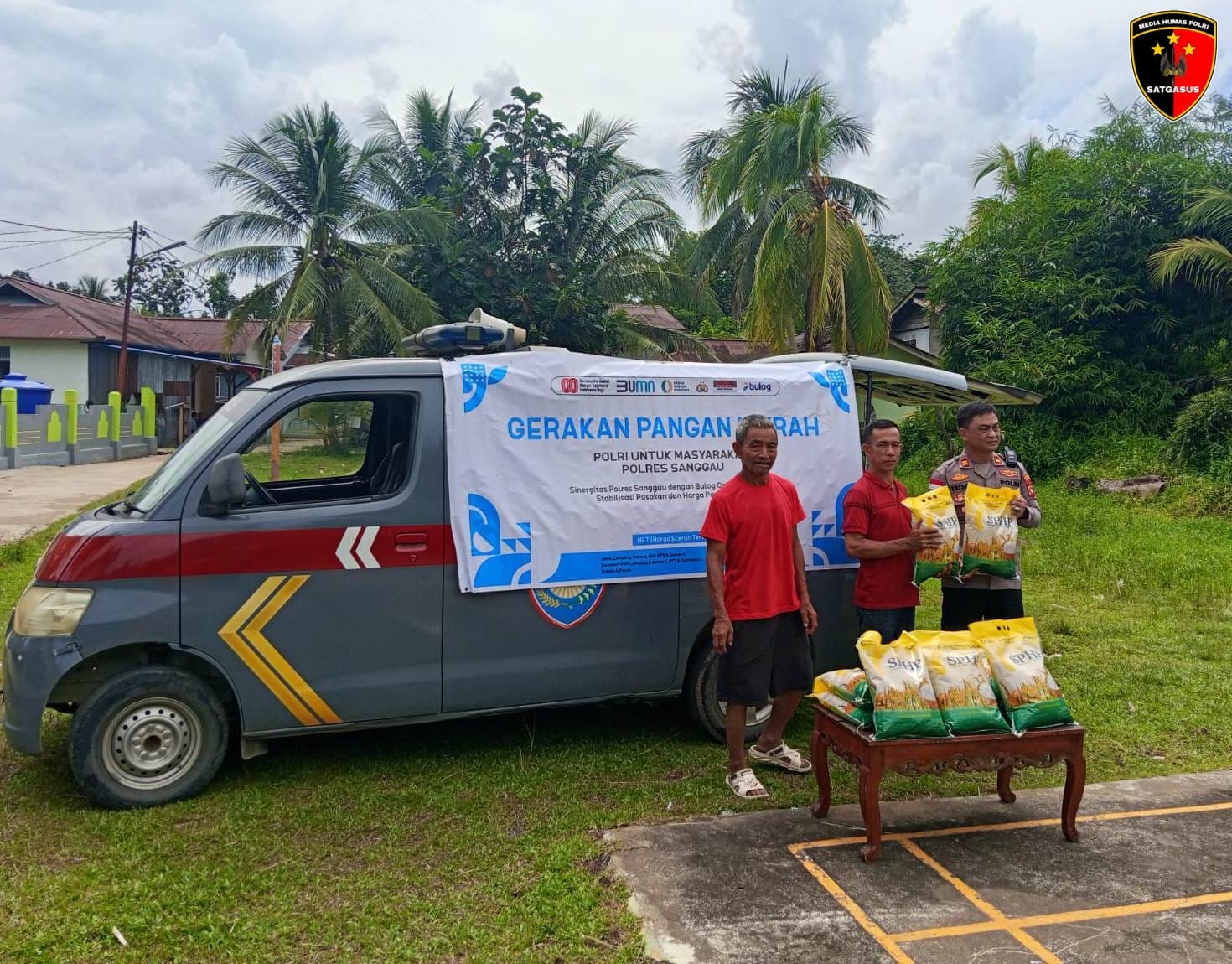 Dalam pelaksanaannya, Polres Sanggau bekerja sama dengan Bulog Cabang Sanggau menghadirkan beras premium merek SPHP kemasan 5 kilogram dengan total stok sebanyak 1 ton, atau setara 200 paket.