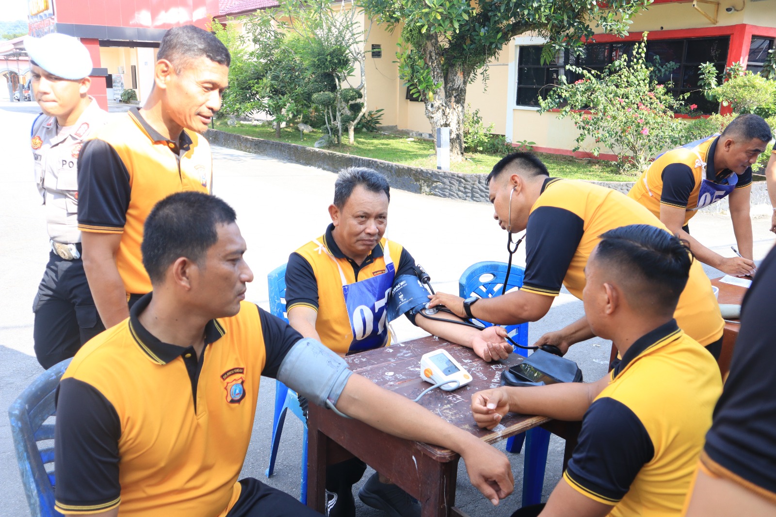 Hadir dalam giat Wakapolres Poso Kompol Anton H. Mohamamad, S.H, MM, Kabag SDM AKP Muliadi,S.H., PJU Polres dan brigadir Polres Poso serta tim medis Dokkes Polres Poso.