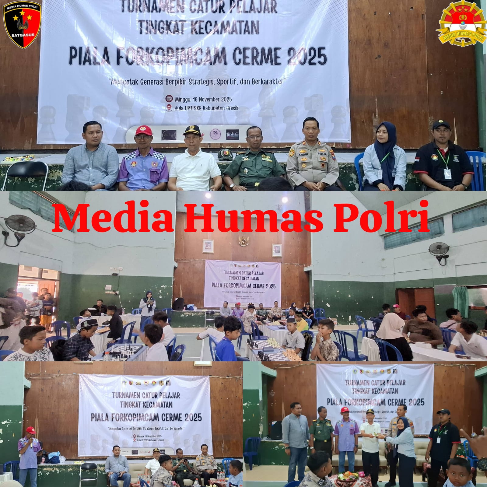 Dalam Acara Turnamen Catur Pelajar Tingkat Kecamatan Cerme 2025 resmi dibuka pada Minggu Tanggal (16-November-2025) Jam 08:00 pagi oleh Bapak H. Umar Hasyim, S.H., M.M., Camat Cerme, disaksikan langsung oleh jajaran Forkopimcam Cerme, Bapak IPTU Andik Asworo, S.H., M.H, Kapolsek Cerme, Bapak Arh M. Nurul Qomar, Danramil 0817/08 Cerme, Bapak Nanang Sampurno, S.H, Kasi Trantib Kecamatan Cerme, serta para pecatur dari berbagai tingkat sekolahan SD,SMP,SMA, se-Kecamatan Cerme, Kegiatan yang digelar di Aula Gedung UPT SKB Kabupaten Gresik ini menjadi momentum penting dalam upaya membangun generasi muda yang berpikir strategis, sportif, dan berkarakter.