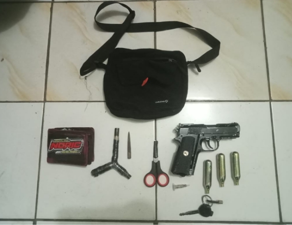 Patroli Polsek Malangbong yang tidak jauh dari Lokasi kejadian langsung menuju lokasi dan Bersama warga berhasil mengamankan satu pelaku beserta sejumlah barang bukti berupa kunci letter Y, mata kunci yang telah di runcing kan, airsoft gun, gas CO2, peluru gotri, kunci motor, gunting kecil, serta tas selempang.