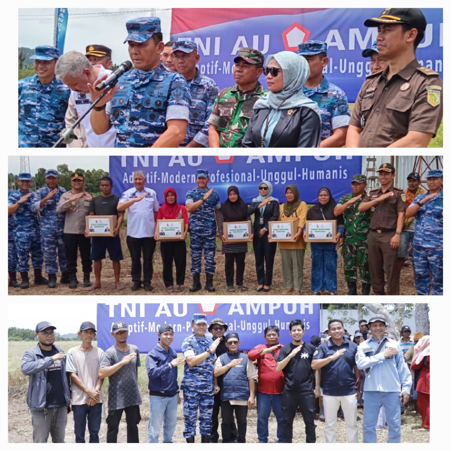 Kunjungan Marsma TNI Arifaini Nur Dwiyanto, dirangkaikan dengan bakti sosial berupa pembagian paket sembako kepada masyarakat, untuk menyambut HUT TNI Angkatan Udara ke 79.
