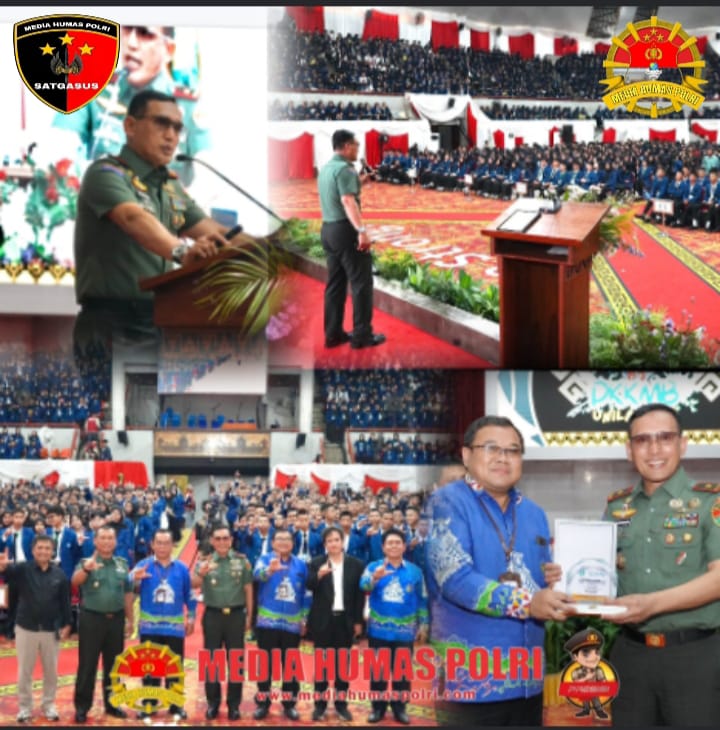 Komandan Korem 043/Gatam Brigjen TNI Haryantana, S.H., memberikan materi tentang Kehidupan Berbangsa, Bernegara, dan Pembinaan Kesadaran Bela Negara pada Program Pengenalan Kehidupan Kampus Mahasiswa Baru (PKKMB) TA. 2025 kepada 4.000 mahasiswa baru Universitas Lampung (Unila). Kegiatan berlangsung di Gedung Serba Guna (GSG) Unila, Jl. Prof. Dr. Ir. Sumantri Brojonegoro, Bandar Lampung, Kamis (14/08/2024).