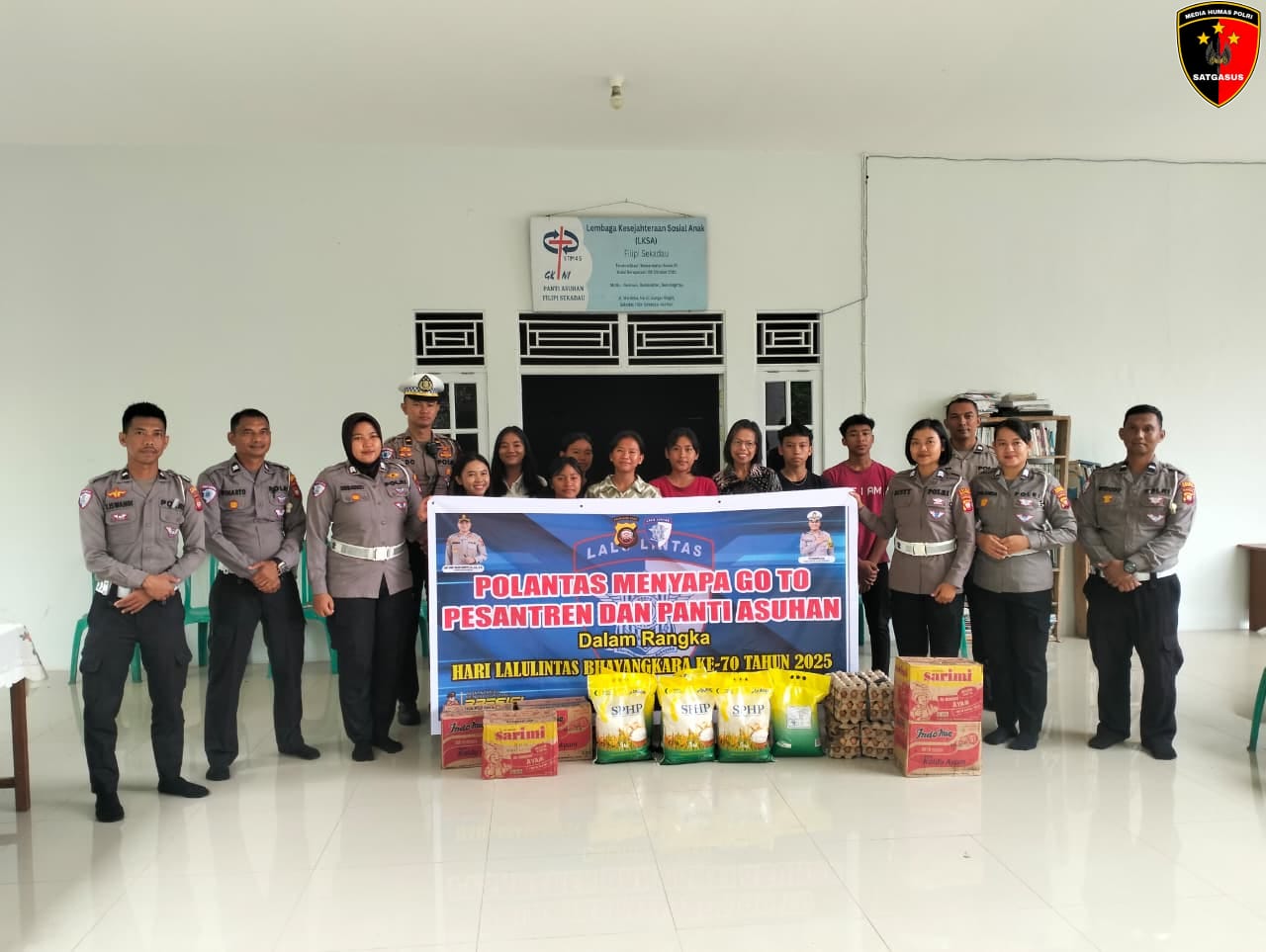 Kegiatan ini dipimpin Kanit Turjagwali Satlantas Polres Sekadau, IPDA Alexander Aldo, dengan menyambangi Panti Asuhan Filipi di Desa Sungai Ringin, Kecamatan Sekadau Hilir, Senin (15/9/2025).