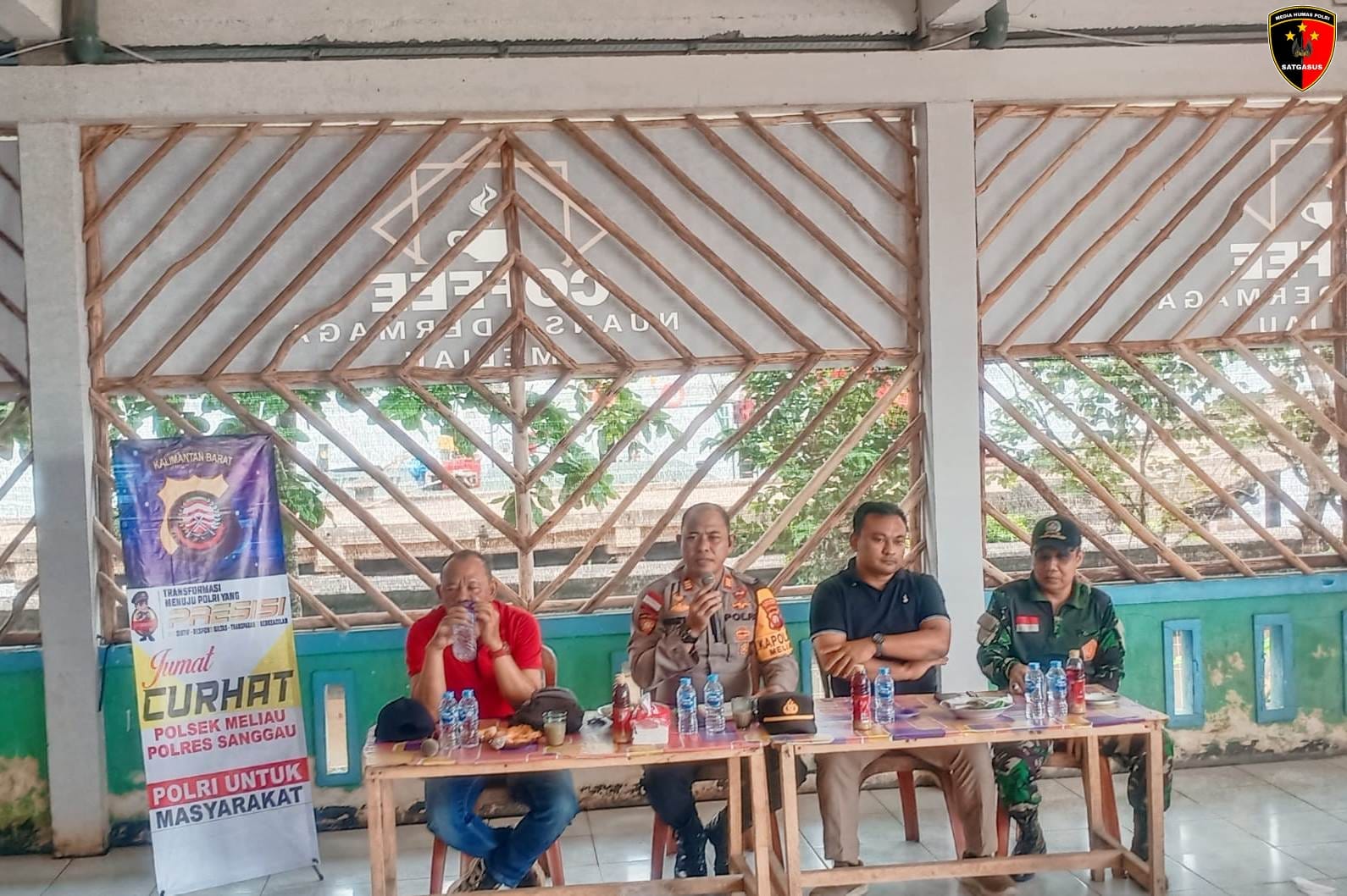 Pererat hubungan antara kepolisian dan masyarakat, Polsek Meliau menggelar kegiatan Jumat Curhat bersama warga Kecamatan Meliau, Kabupaten Sanggau, pada Jumat (31/10/2025) pagi. Acara yang berlangsung di Warung Kopi Dermaga milik Paulus, Desa Meliau Hilir, ini menjadi sarana komunikasi dua arah antara aparat kepolisian dan masyarakat guna mewujudkan situasi kamtibmas yang aman dan terkendali.