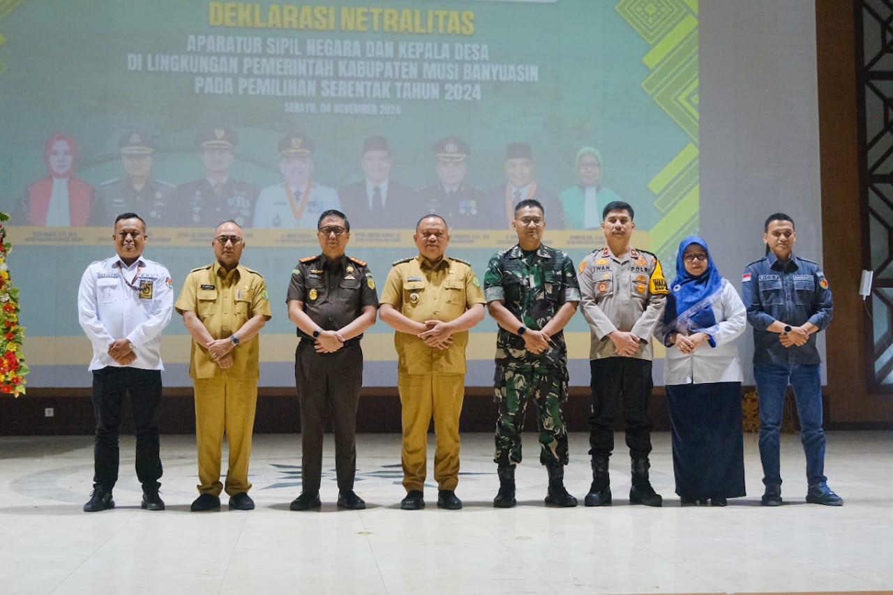 Acara Deklarasi Netralitas ASN dan Aparatur Desa di Kabupaten Musi Banyuasin Tahun 2024 ini dihadiri oleh Forkopimda Muba , termasuk paparan dari Kapolres Muba melalui Wakapolres Muba, Kompol Iwan Wahyudi SH, dan Paparan langsung Kajari Muba, Roy Riadi SH MH.