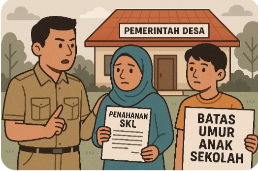 Kasus yang terjadi di beberapa lingkungan dalam desa menunjukkan adanya anak-anak yang tidak dapat melanjutkan ke jenjang pendidikan berikutnya karena belum menerima Surat Keterangan Lulus (SKL) dari lembaga pengasuh. Sebagian lainnya ditolak oleh sistem Penerimaan Peserta Didik Baru (PPDB) karena usia yang melebihi batas maksimal.