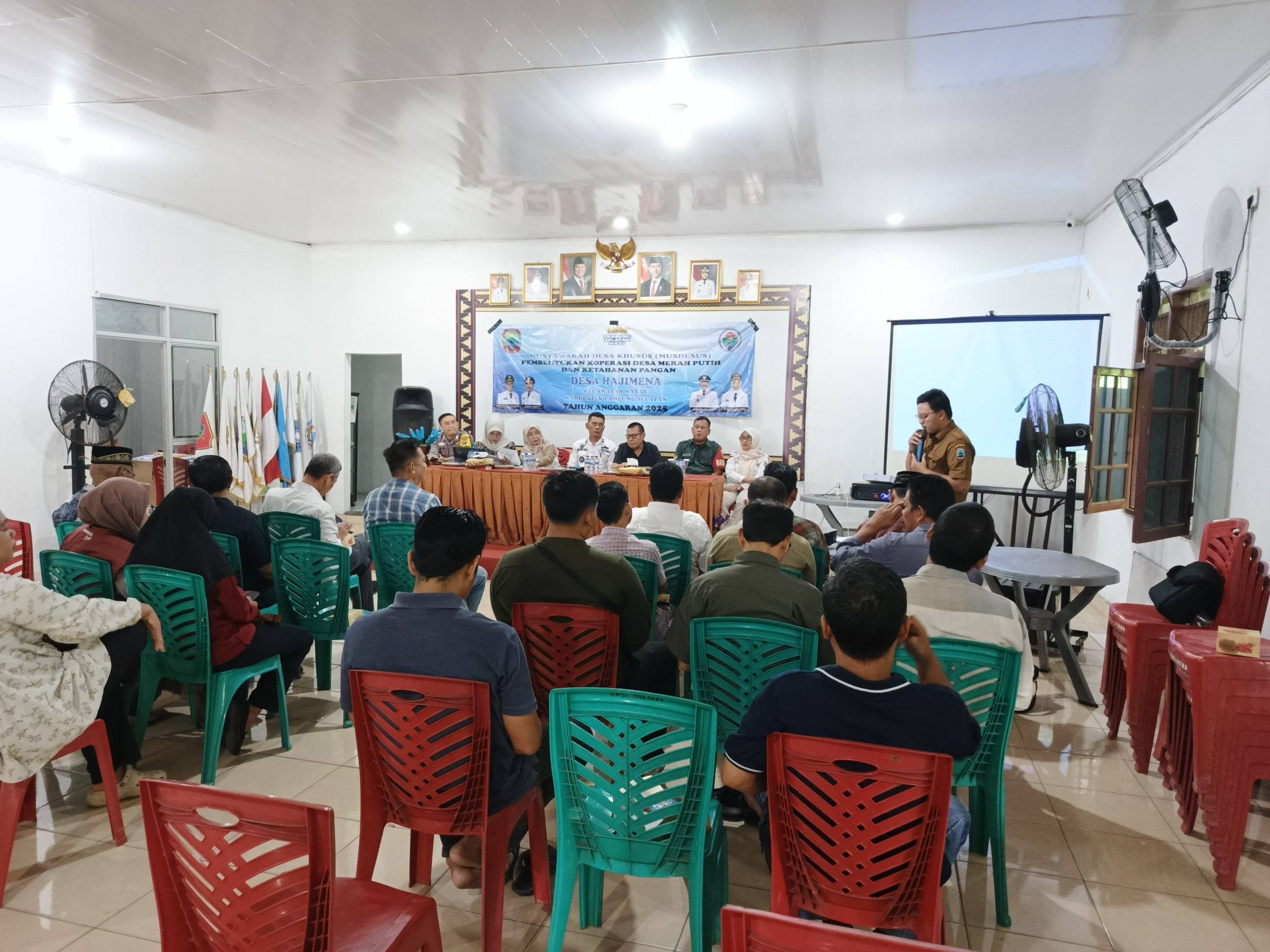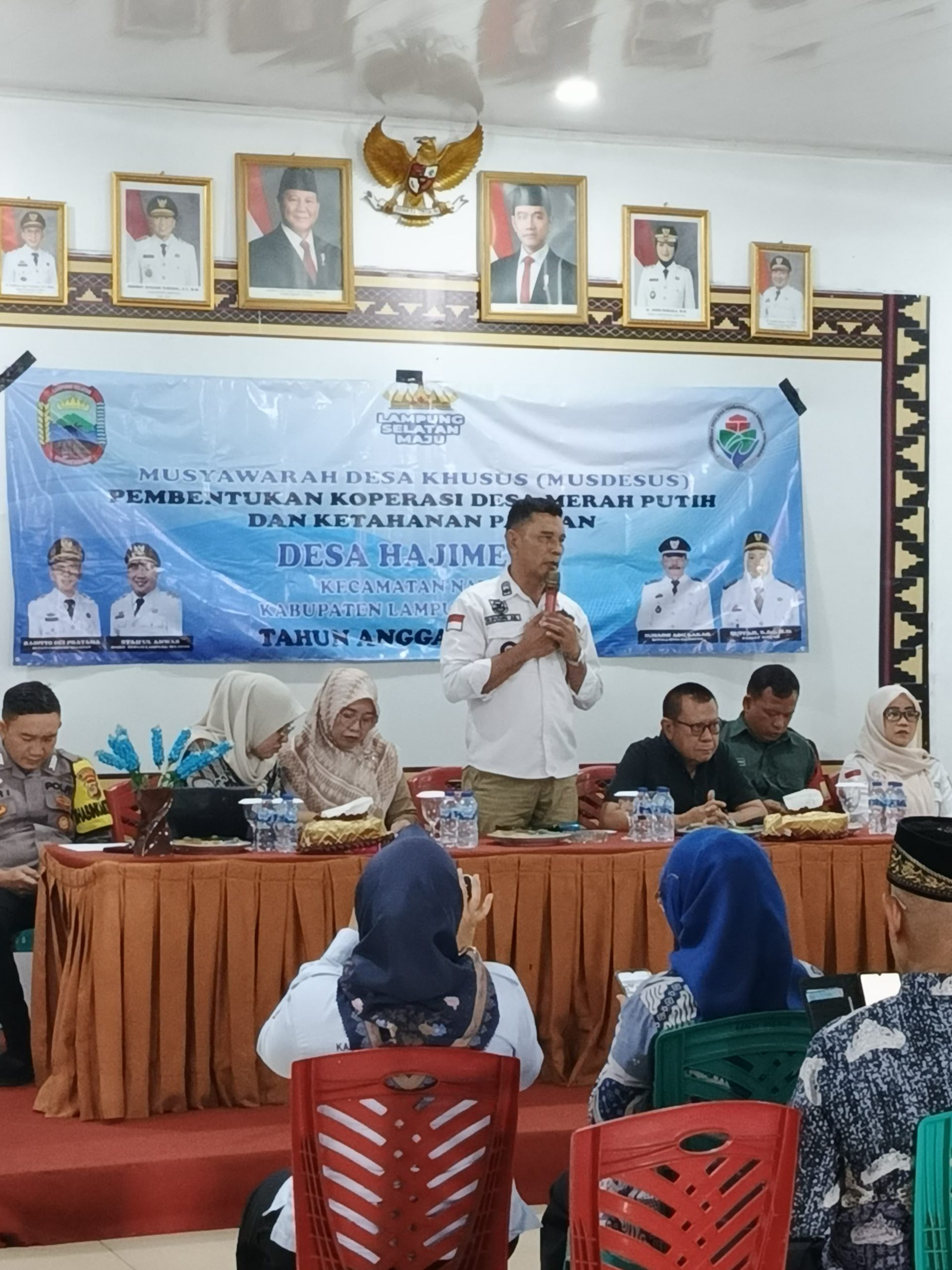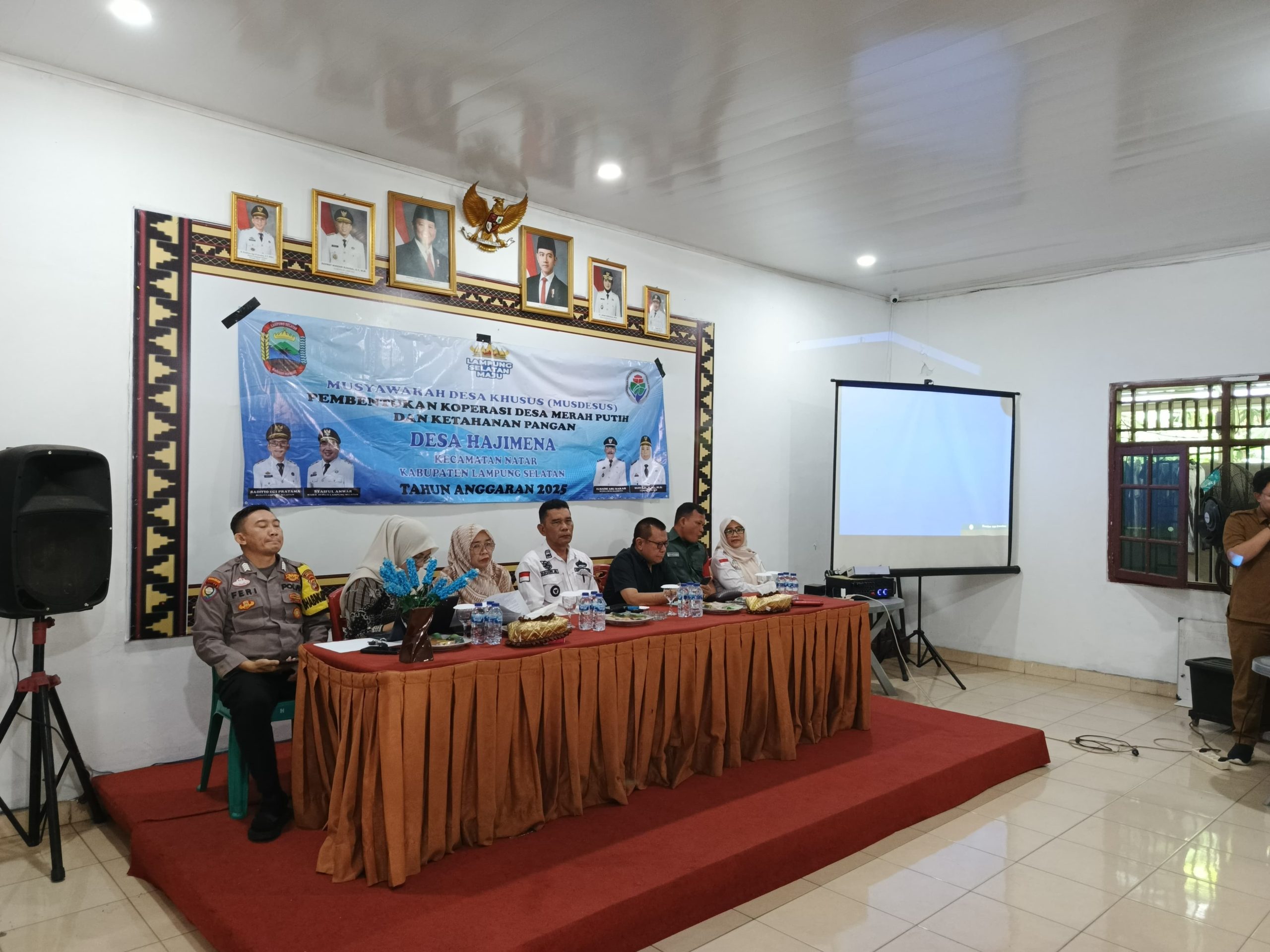 Pentingnya kemajuan desa untuk meningkatkan ekonomi masyarakat serta sinergitas di bidang ketahanan pangan desa Hajimena menggelar Musyawarah desa di hadiri Kasi Pertanahan kecamatan Natar ibu Muryani ( 13/5/25).