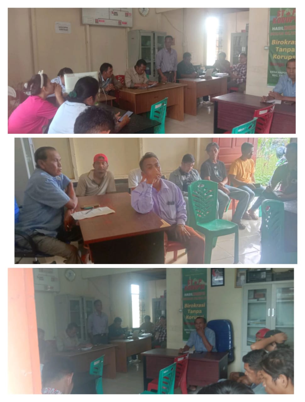 Pemerintah Desa Hapoltahan Kecamatan Tarutung Kabupaten Tapanuli Utara Provinsi Sumatera Utara menggelar agenda Musrenbang membicarakan Pertambahan Dana Desa tahun 2024 sebesar 120 juta.