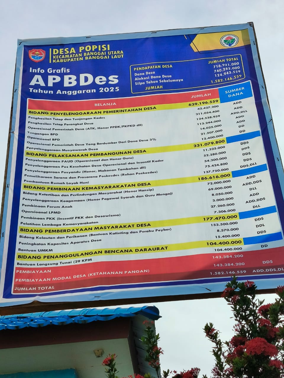 Masyarakat Banggai Laut kembali dihadapkan pada dugaan penyimpangan keuangan yang melibatkan Dana Desa (DD) dan Anggaran Dana Desa (ADD) di Desa Popisi, Kecamatan Banggai Utara, Banggai Laut. Dugaan penyimpangan ini terjadi dalam kurun waktu tahun anggaran 2017 hingga 2024.