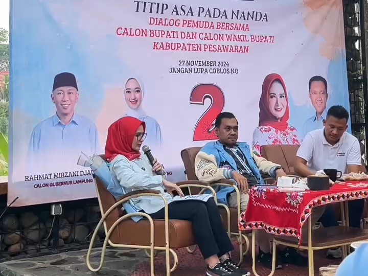 Hal itu disampaikan oleh Calon Bupati (Cabup) Kabupaten Pesawaran nomor urut 2 Nanda Indira, saat menghadiri kegiatan Titip Asa Pada Nanda “Dialog Pemuda Bersama Calon Bupati dan Wakil Bupati Pesawaran Nanda – Anton” di Cafe Backland Desa Bagelen Kecamatan Gedong Tataan kabupaten setempat, Kamis 14 November 2024.