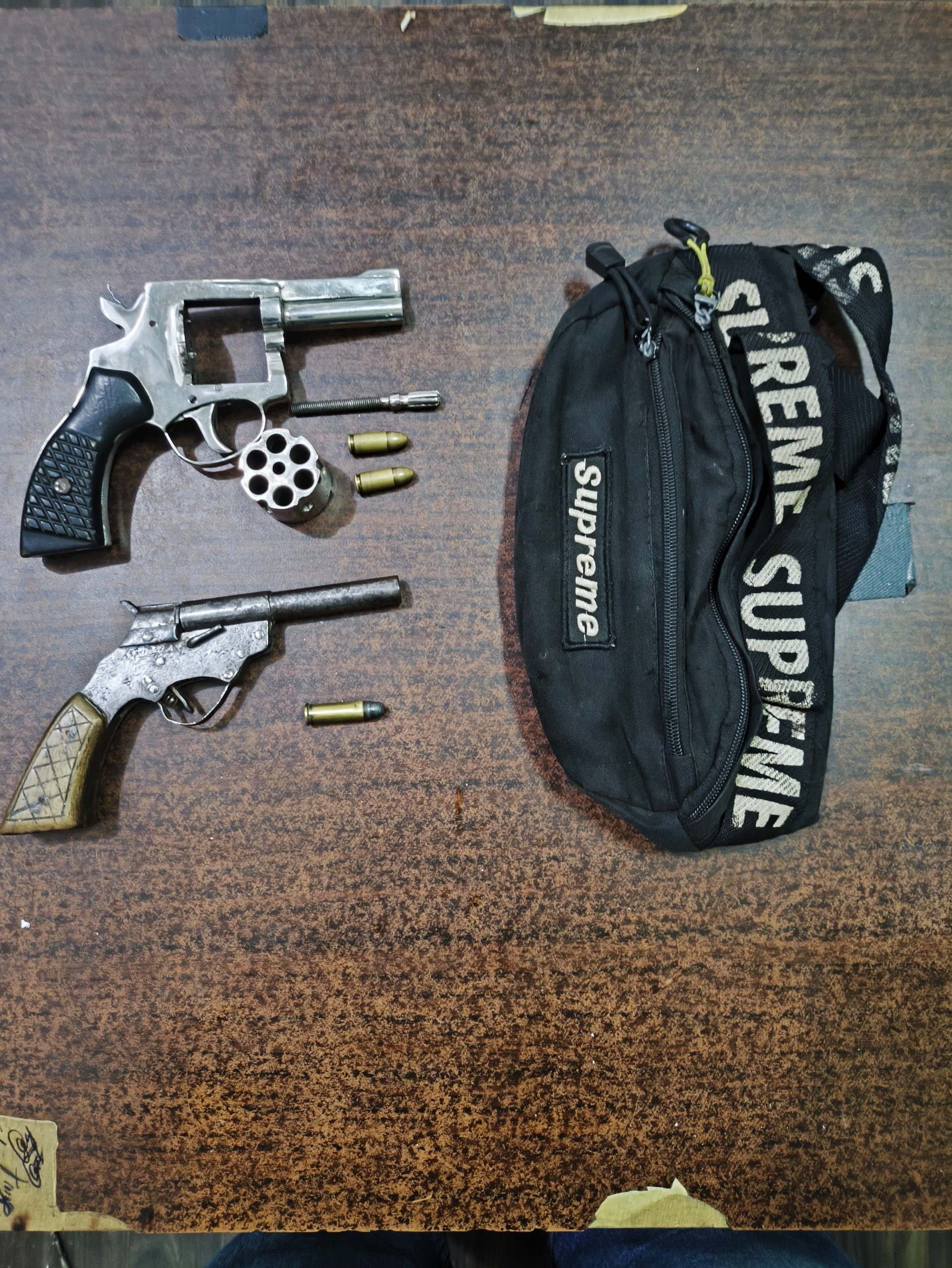 Tim Opsnal menyita sejumlah barang bukti dari pelaku yakni, dua pucuk senjata api rakitan, dua butir peluru kaliber 9mm, sebutir peluru kaliber 38mm dan tas selempang merek Supreme warna hitam.