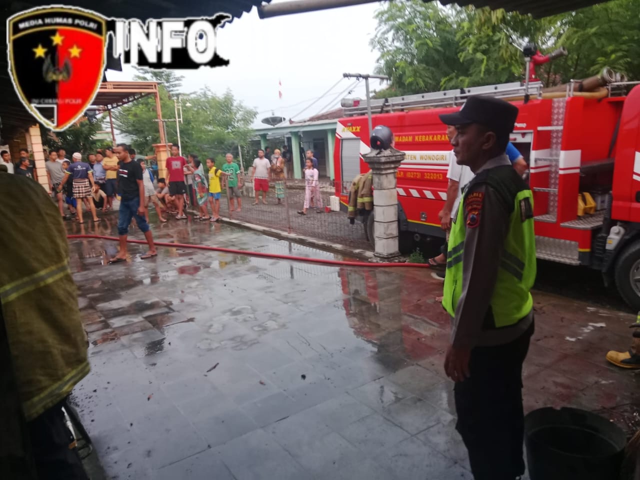 Warga sekitar membantu memadamkan api. Ada juga warga melapor ke Polsek Selogiri dan menghubungi petugas pemadam kebakaran.