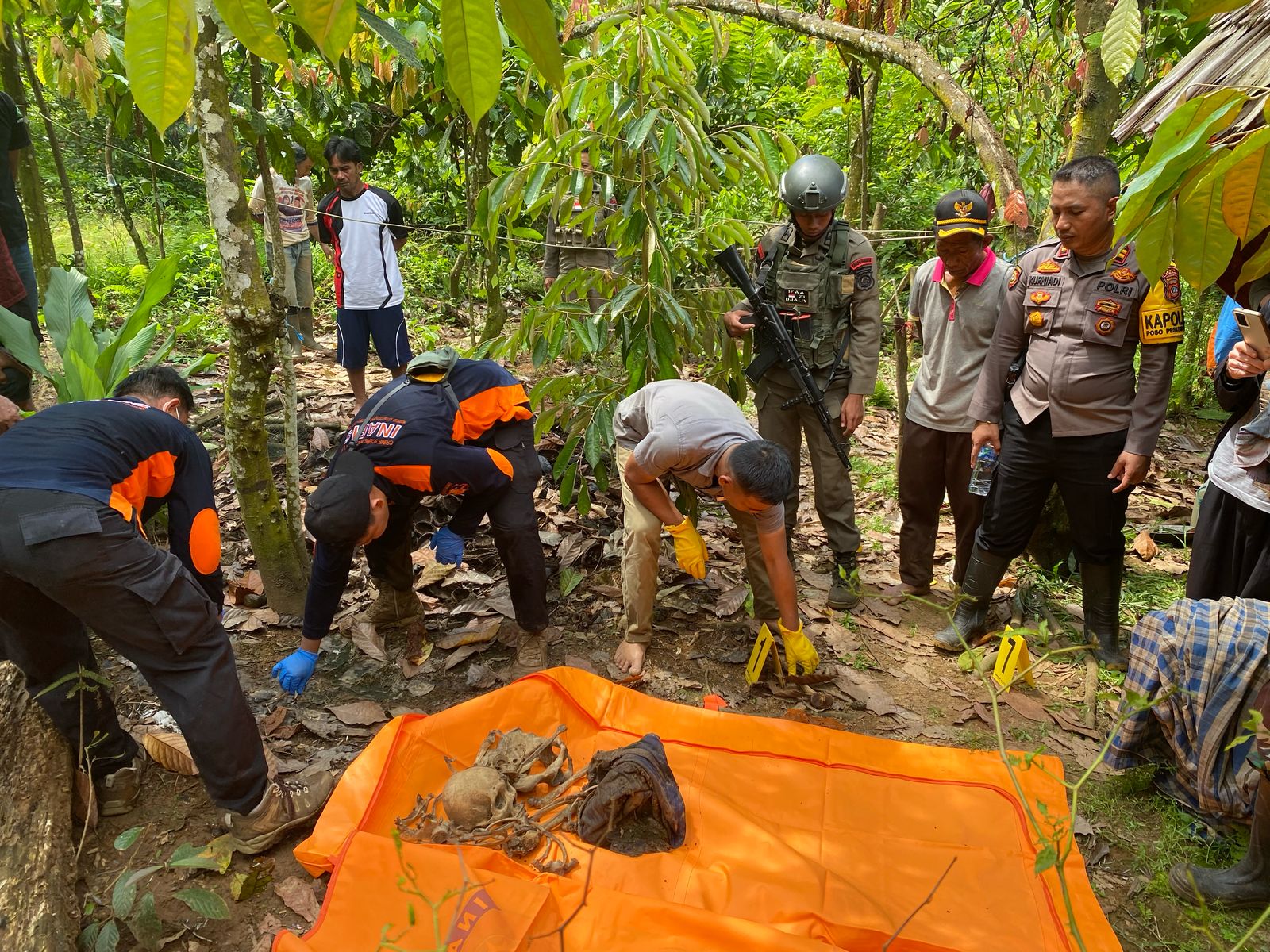 Warga Desa Kawende, Kecamatan Poso Pesisir Utara, Kabupaten Poso, digegerkan dengan penemuan sesosok mayat yang telah menjadi tulang belulang di wilayah perkebunan Pegunungan Karaupa Desa Kawende Kecamatan Poso Pesisir Utara Kabupaten Poso, Selasa (17/6/2025).