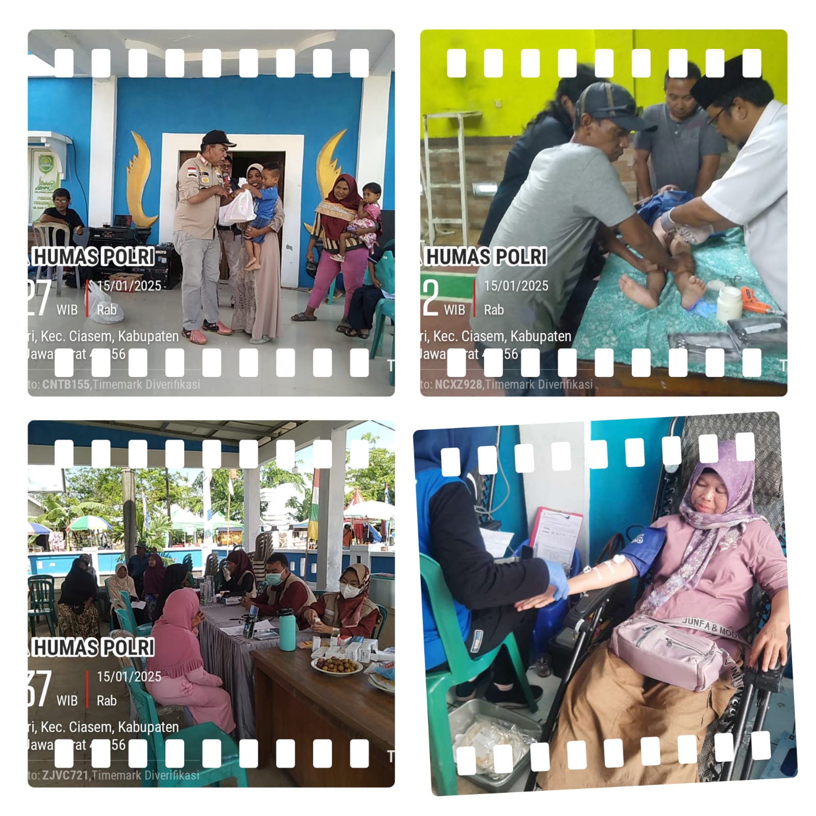 Untuk pemeriksaan gratis dari Dr Rumah Sakit Izaa, sunat masal dari mantri Tegal Tangkil Blanakan serta untuk donor darah dari PMI Subang.
