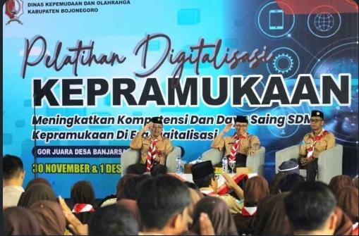 Dinas Kepemudaan dan Olahraga (Dinpora) Kabupaten Bojonegoro menggelar Pelatihan Digitalisasi Kepramukaan, Sabtu (30/11/2024). Kegiatan dilaksanakan di GOR Juara, Jalan Tugu Desa Banjarsari, Kecamatan Trucuk.