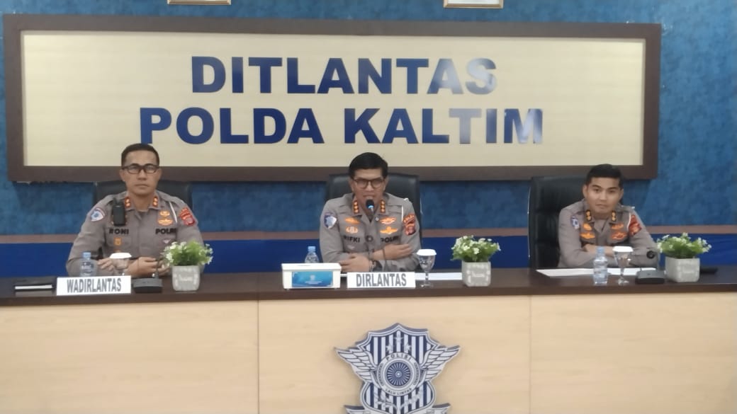 Direktorat Lalu Lintas Polda Kalimantan Timur merilis hasil pelaksanaan Operasi Zebra Mahakam 2025 dalam konferensi pers di Aula Ditlantas Polda Kaltim, Jalan Jenderal Sudirman, Balikpapan Kota, Selasa (2/12/2025). Evaluasi dipimpin langsung Dirlantas Polda Kaltim, Kombes Pol Rifki, S.H., S.I.K., didampingi Wadirlantas AKBP Roni Mustafa, S.I.K., M.I.K., dan Kabag Binops AKBP Feby Febriana, S.I.K.