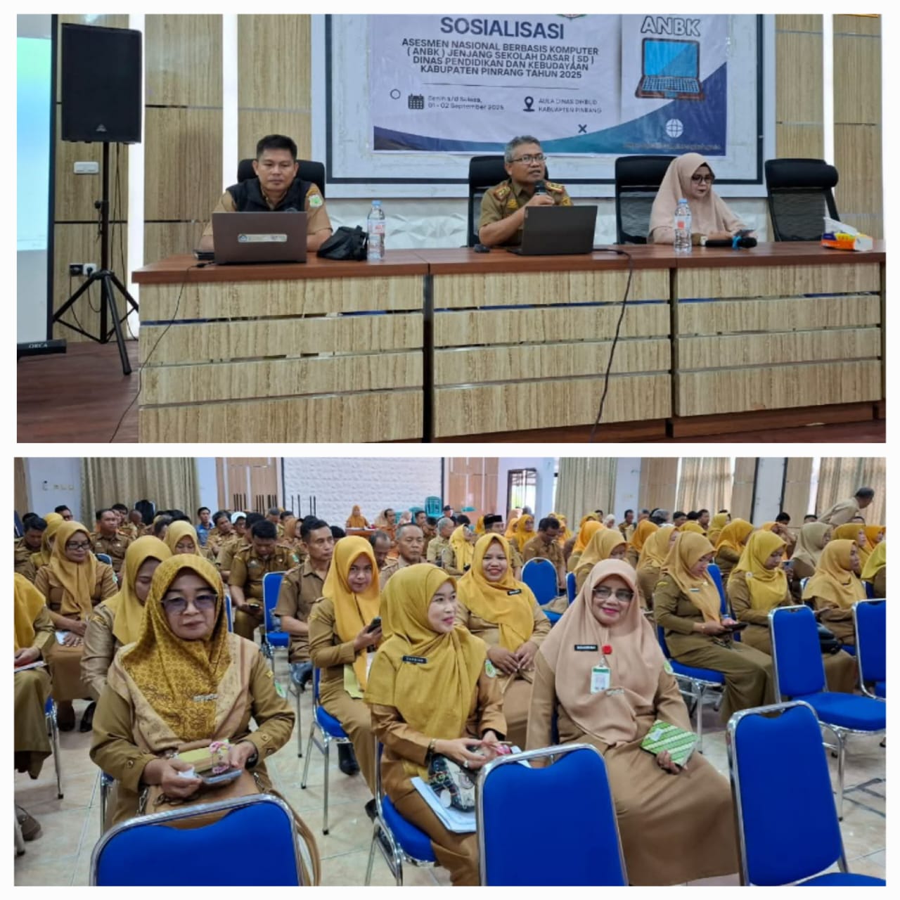 Dinas Pendidikan dan Kebudayaan (Disdikbud) Kabupaten Pinrang, mengadakan kegiatan sosialisasi Asesmen Nasional Berbasis Komputer (ANBK) jenjang Sekolah Dasar (SD) Tahun 2025, bertempat di, Aula kantor Disdikbud Pinrang, Senin (1/9/2025)